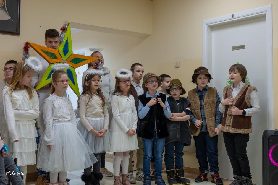 W dniach 25 stycznia i 1 lutego uczniowie szkoły podstawowej z klasy 4a,5a, 7a, 8a, 2a, 2ac i 3ac mieli przyjemność wziąć udział w kolędowaniu dla pań pensjonariuszek Zakładu Opiekuńczo – Leczniczego Sióstr Zgromadzenia Matki Bożej Bolesnej w Oświęcimiu. Przygotowany przez uczniów koncert zaangażował mieszkanki ZOL do wspólnego śpiewania znanych i lubianych tradycyjnych kolęd. Na koniec dzieci wręczyły Paniom serca i złożyły życzenia związane z obchodzonym w styczniu Dniem Babci. Wśród wielu wzruszeń i uśmiechów wspólnie spędziliśmy szczęśliwe chwile, zdobywając doświadczenie – jak ważnym jest dla wszystkich czynienie dobra. Dzieci miały okazję odwiedzić panie w ich pokojach oraz kolędowały dla tych osób, których zdrowie nie pozwoliło na wspólne spotkanie w czasie koncertu. Niezwykłym doświadczeniem było także spotkanie z Panią Marią, która w tym roku skończy 102 lata, jej życzliwy uśmiech i radość z odwiedzin naszych uczniów dał nadzieję na kolejne muzyczne spotkania i dzielenie się dobrem.
