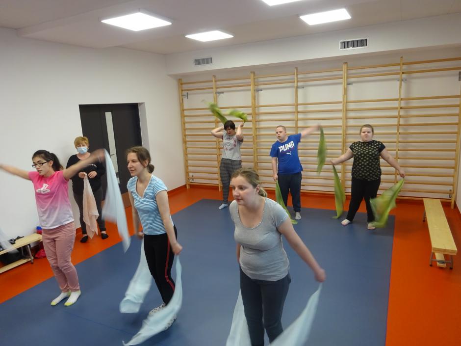 1 marca 2021 Zajęcia ruchowo- taneczne Cyklicznie w każdy poniedziałek Pani Renia i Pani Jola prowadzą zajęcia ruchowo- taneczne dla chętnych wychowanków Internatu.