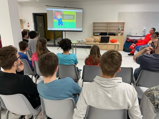 Celem spotkania było przeszkolenie uczniów w wykonywaniu prostych czynności udzielania pierwszej pomocy. Na samym początku ratownik przedstawił dzieciom podstawowe informacje udzielania pierwszej pomocy oraz sprzęt pomocniczy. Potem wytłumaczył wszystkie etapy przeprowadzania resuscytacji krążeniowo-oddechowej (RKO).