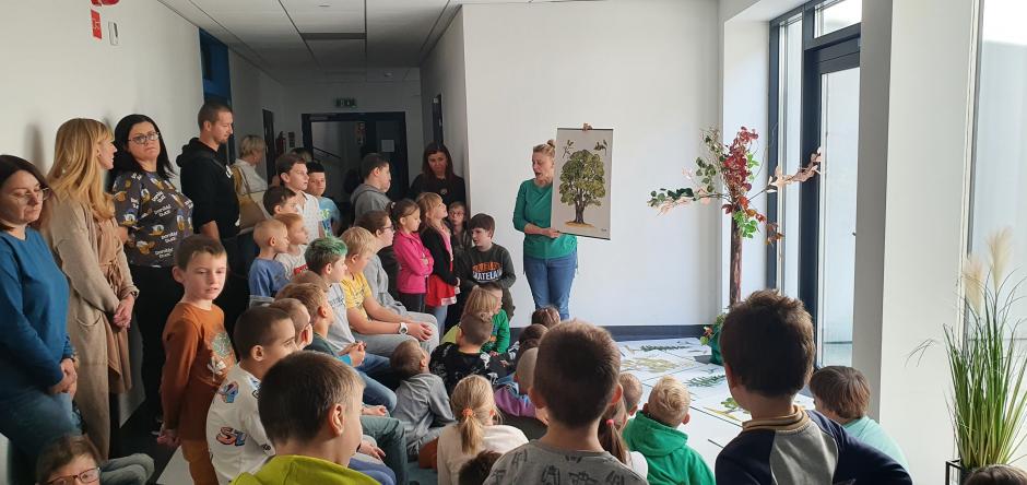 10 października młodsze klasy Szkoły Podstawowej wzięły udział w spotkaniu z okazji Światowego Dnia Drzewa – w ramach spotkania dzieci wzbogaciły wiedzę na temat przyrody polskiej, a także przypomniały sobie zasady zachowania w czasie spaceru po lesie. Spotkaniu przyświecało motto ” Las od zawsze żyje z nami, opiekujmy się lasami.”