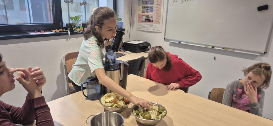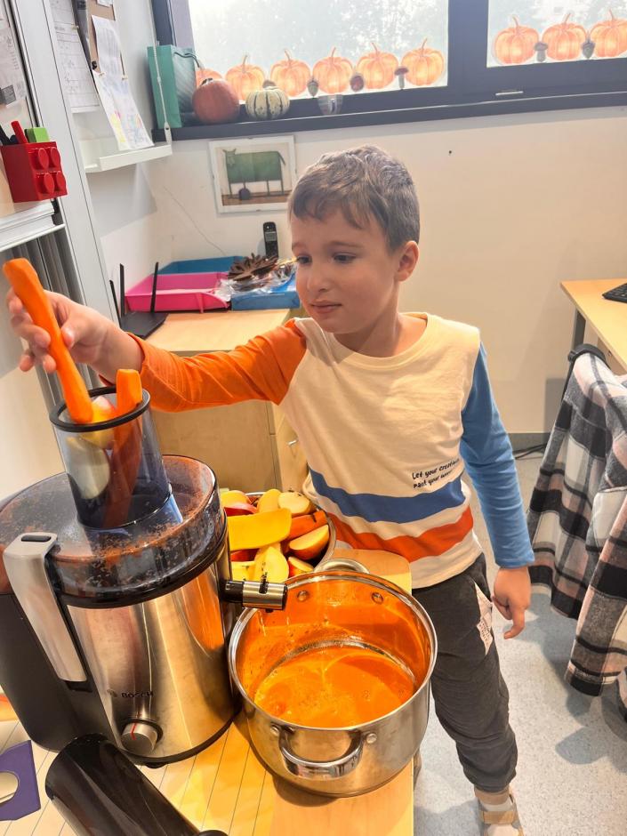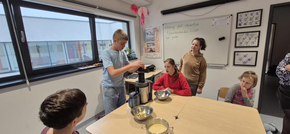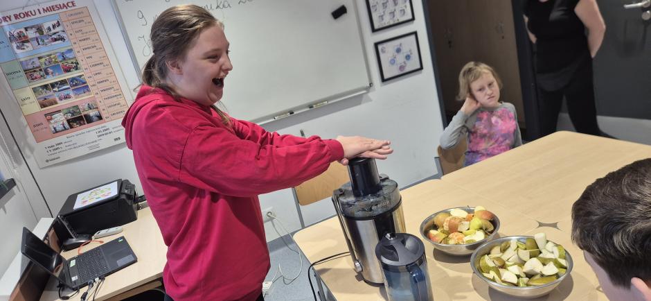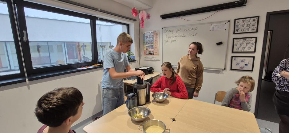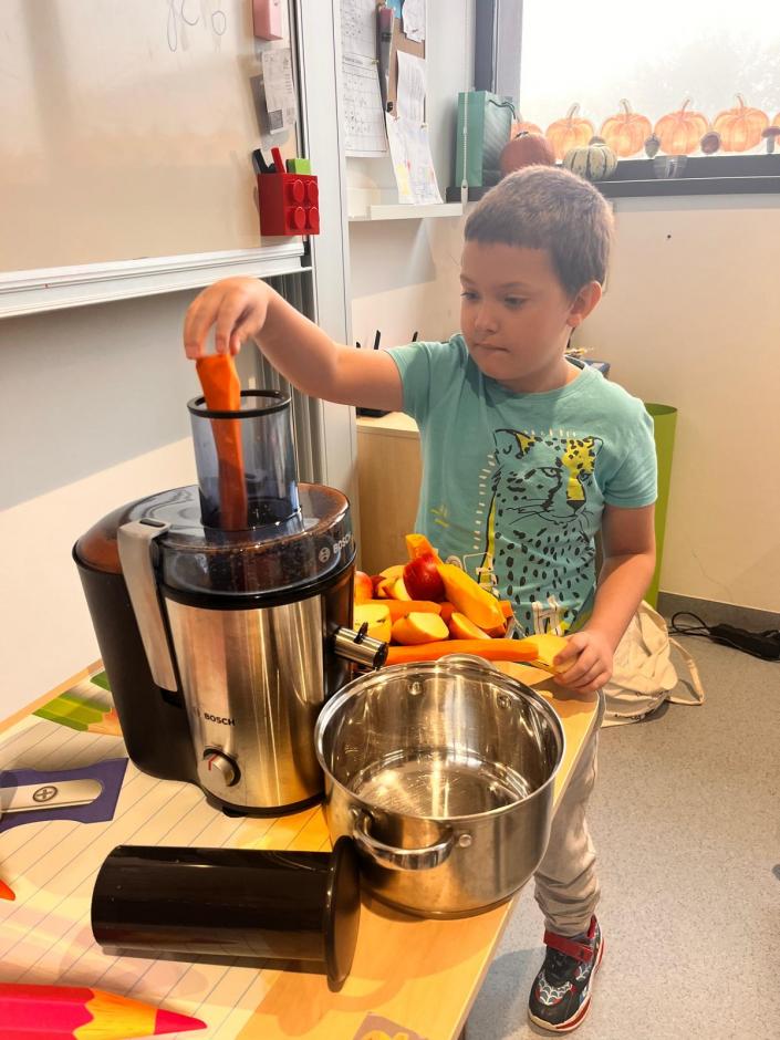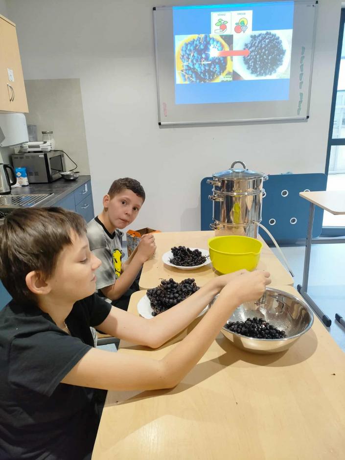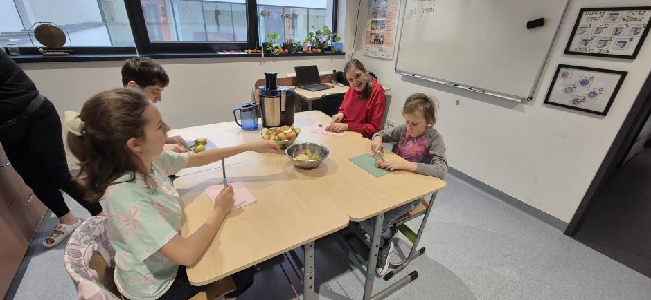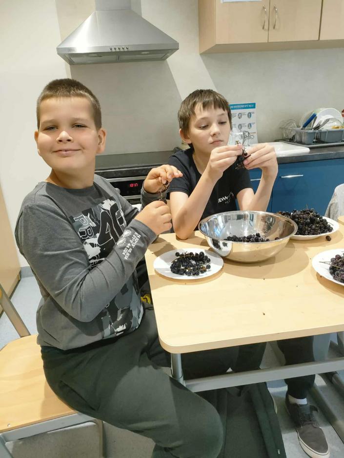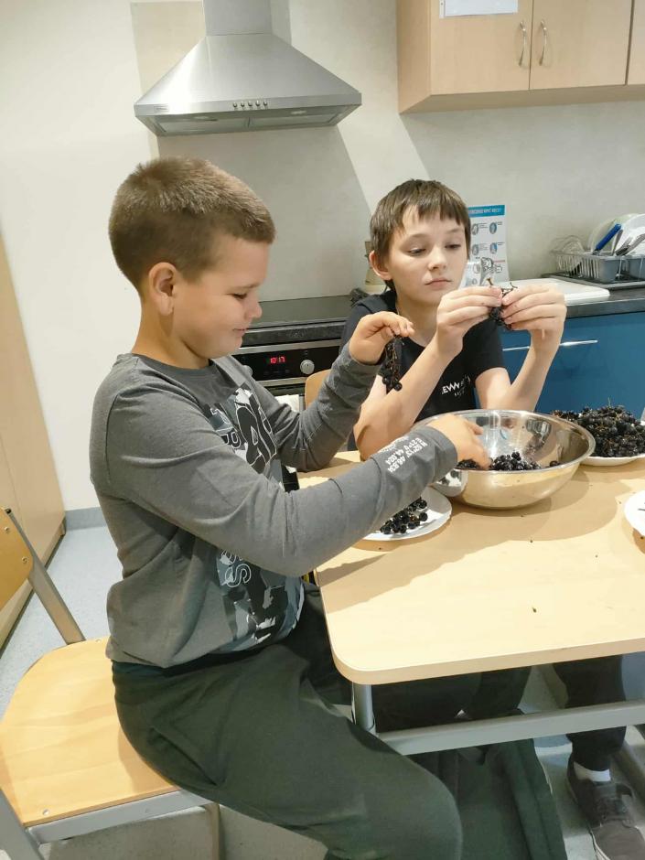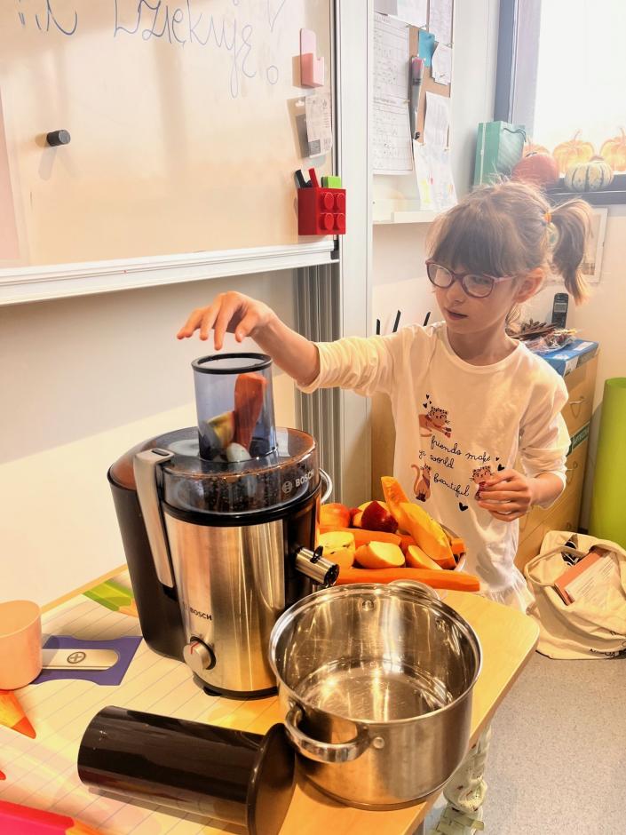 Przez dwa ostatnie tygodnie września uczniowie podczas zajęć przygotowywali w klasach potrawy z jesiennych warzyw (cukinii, papryki, ziemniaków) oraz owoców (jabłek, gruszek, winogrona). Na stołach pojawiły się potrawy z ziemniaków, leczo, soki owocowe.
