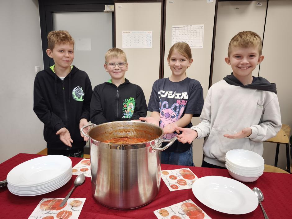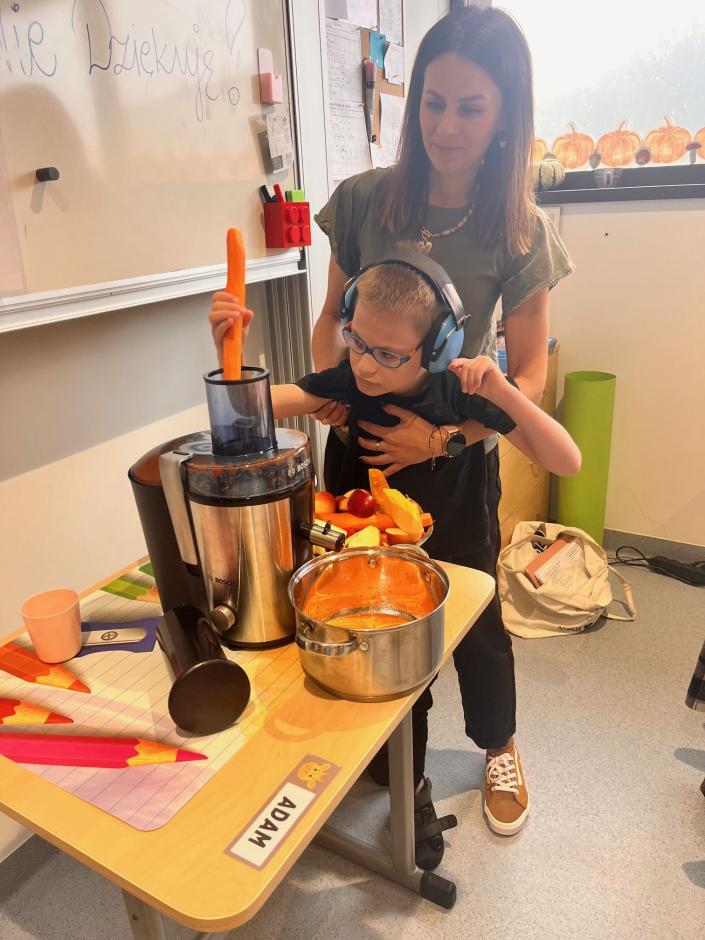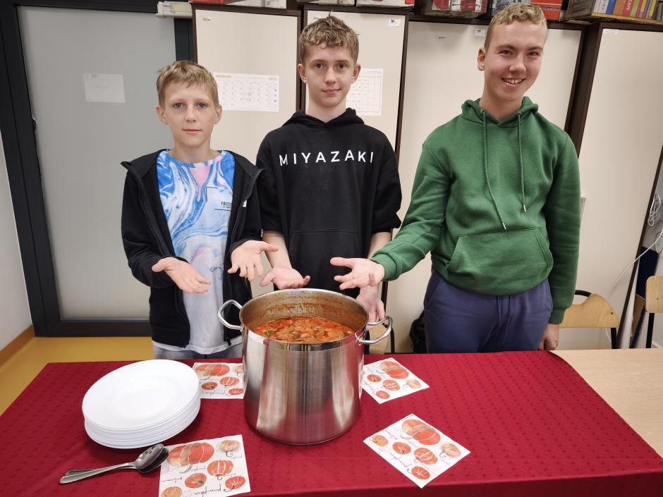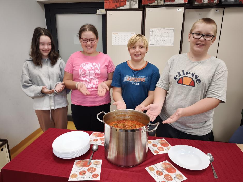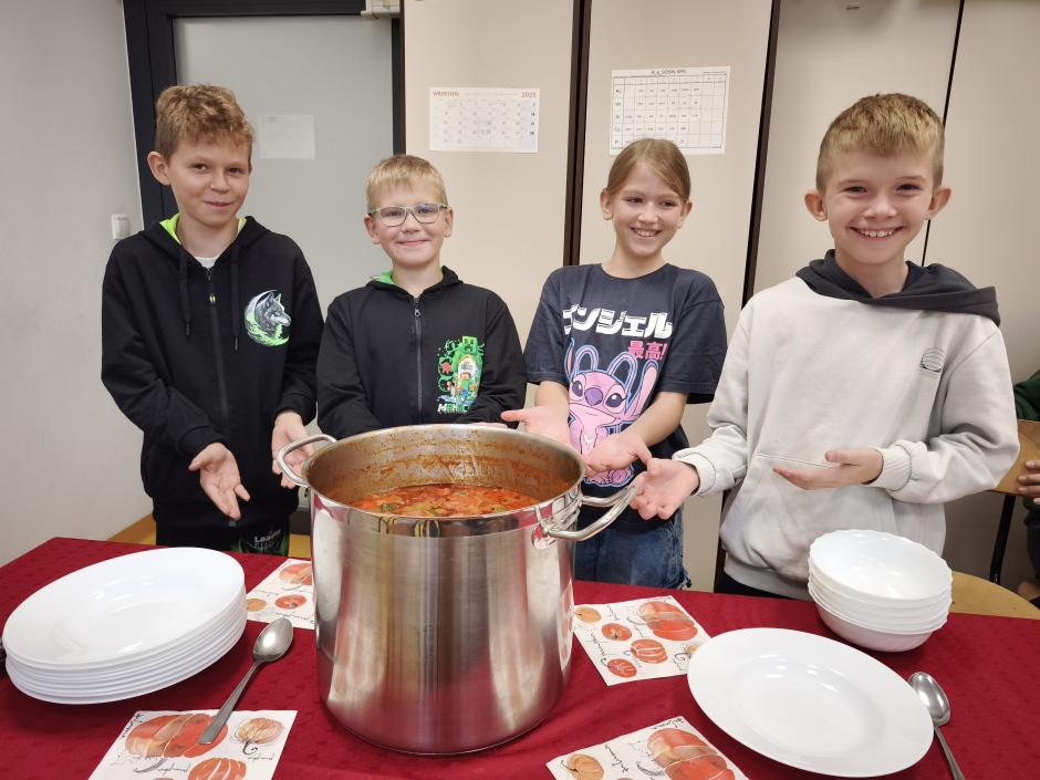 Przez dwa ostatnie tygodnie września uczniowie podczas zajęć przygotowywali w klasach potrawy z jesiennych warzyw (cukinii, papryki, ziemniaków) oraz owoców (jabłek, gruszek, winogrona). Na stołach pojawiły się potrawy z ziemniaków, leczo, soki owocowe.
