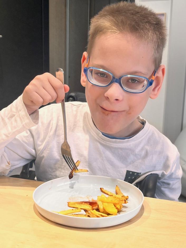 Podczas zajęć uczniowie wykorzystali deski, noże, garnki, talerze , sztućce, blender, patelnie otrzymane w ramach programu # Laboratorium Przyszłości#