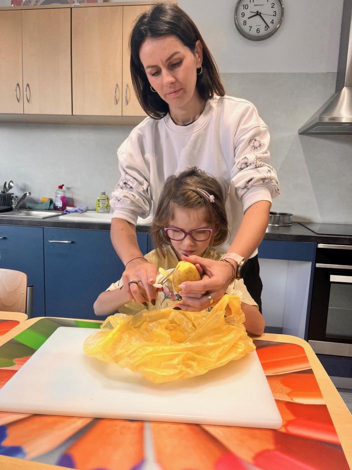 Celem zajęć było utrwalenie wiadomości dotyczących sezonowych warzyw i owoców, ich  przechowywania, wartości odżywczych, obróbki termicznej, a także utrwalenie zasad bhp podczas przygotowywania posiłków.