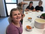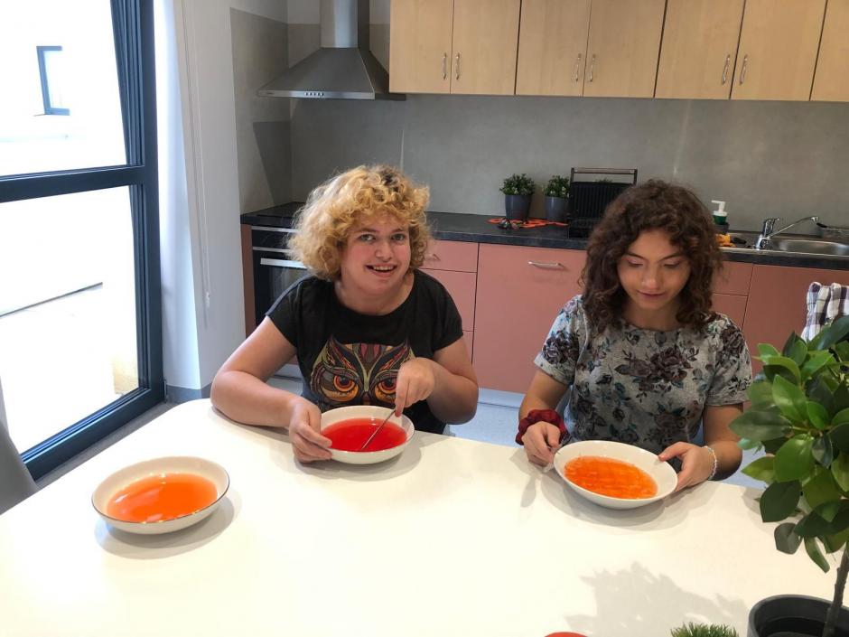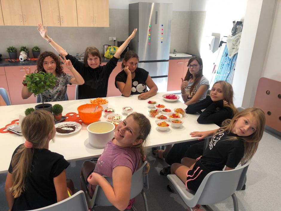 Grupy III i IV połączyły wspólne siły podczas zajęć kulinarnych w kuchni dydaktycznej. Przygotowałyśmy deser z kolorowych galaretek, polanych jogurtem i ozdobionych mandarynkami. Całości dopełniła posypka z tartej, gorzkiej czekolady. Z kuchni przeniosłyśmy się na świetlicę Grupy IV gdzie obchodziłyśmy urodziny dwóch Jubilatek: Julii z Grupy III i Ani