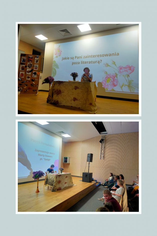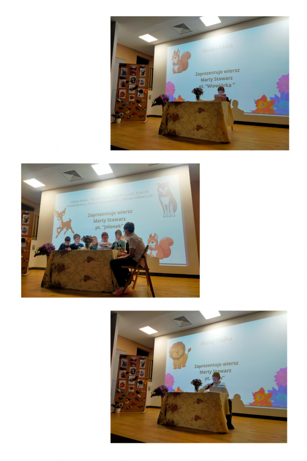 11 kwietnia 2024 r. w naszej szkole odbył się Konkurs Pięknego Czytania. Uczniowie zaprezentowali wiersze z tomiku poezji pt. „Słońce we mgle” Marty Stawarz. Pani Marta to pisarka, która pochodzi z Trzebini. Mieliśmy zaszczyt gościć ją na naszym konkursie. Zgodziła się zasiąść w jury.