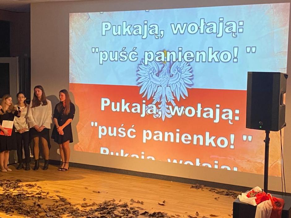 To wielka radość móc dzisiaj świętować 104 rocznicę odzyskania przez Polskę niepodległości. W przeddzień ważnego święta spotkaliśmy się na auli aby w atmosferze powagi, ale i wielkiej radości świętować niepodległość. Było wspólne śpiewanie pieśni patriotycznych oraz przypomnienie najważniejszych wydarzeń z historii Polski. Akademia z okazji Święta Niepodległości była wspaniałą lekcją historii i patriotyzmu. Wolność i niepodległość to wartości, o które należy wciąż dbać i stale je pielęgnować. Należy pamiętać, że wolność to wartość ważna dla każdego człowieka, bez względu na narodowość.