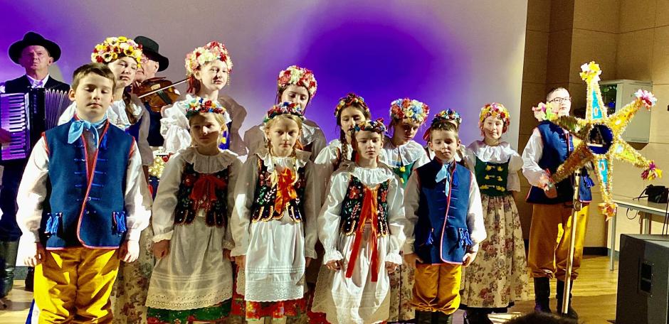 W dniu 11 stycznia mieliśmy zaszczyt gościć grupę dziecięcą Ludowego Zespołu Pieśni i Tańca „Andrychów” z Andrychowa. Kolędnicy z gwiazdą i w strojach ludowych naszego regionu przy akompaniamencie kapeli, zaprezentowali tradycyjne kolędy i pastorałki. Goście przywieźli ze sobą „wakat”- ludowy instrument perkusyjny z charakterystyczną główką diabełka na górze, którym to według starych wierzeń odpędza się wszystko co złe w domostwach odwiedzanych przez kolędników.
