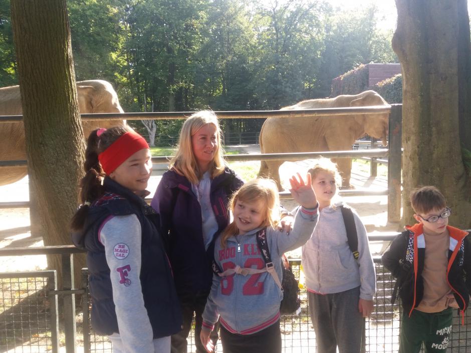 Pewnego słonecznego, jesiennego dnia uczniowie klasy 1b oraz 3c wybrali się na wycieczkę do Ogrodu Zoologicznego w Krakowie.