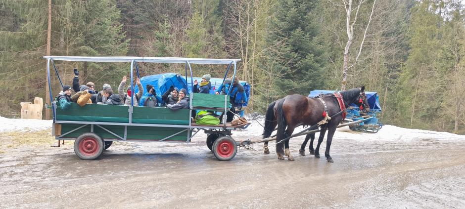 Po przejażdżce wszyscy udaliśmy się do bacówki, w której mogliśmy się ogrzać. Każdy napił się czegoś ciepłego i skosztował pysznych kiełbasek.