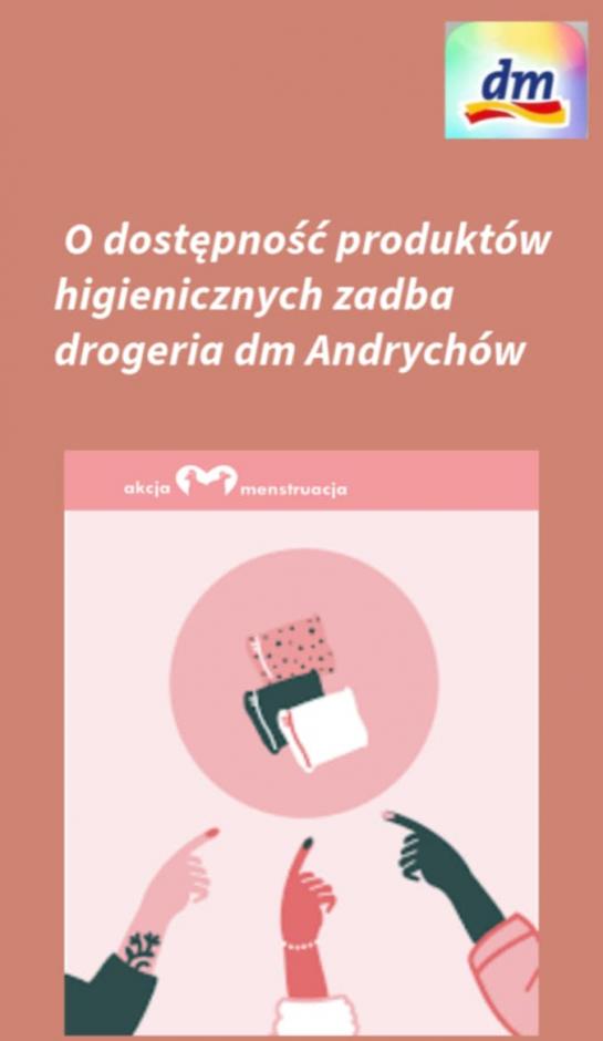 Od marca do „ Akcji Menstruacji” realizowanym  w Specjalnym Ośrodku Szkolno-Wychowawczym w Oświęcimiu im. Zofii Posmysz przystąpiła także szkoła podstawowa, zawodowa i Szkoła Przysposabiająca do Pracy. W ramach działań podjęto współpracę z nowym sponsorem – Drogerią DM Andrychów. W dniu 11 marca panie z drogerii dostarczyły dla uczennic i wychowanek ośrodka środki higieniczne w postaci mydełek, podpasek, tamponów, chusteczek nawilżających z firmy Jessa i Balea. Otrzymane środki rozprowadzono w toaletach i łazienkach dziewcząt.