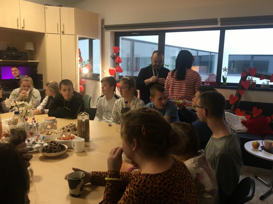 Walentynkowa impreza integracyjna  całego internatu odbyła się dzień wcześniej. W Dniu Zakochanych chłopaki z grupy I oraz dziewczęta z grupy III i IV spotkali się raz jeszcze, by uczcić ten szczególny dzień. Młodzież mile spędziła chwile przy słodkim poczęstunku i  romantycznej muzyce.