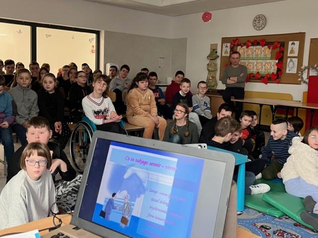 W dniu 14.03 uczniowie ze szkoły podstawowej wzięli udział w projekcie „Bardziej niż fryzura zdobi Cię kultura”. Spotkanie poświęcone było zasadom kulturalnego zachowania się w codziennych sytuacjach. Przeprowadzony quiz udowodnił, ze uczniowie naszej szkoły posiadają solidną wiedzę z zakresu savoir-vivre.