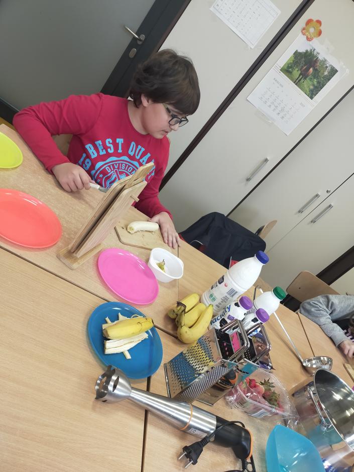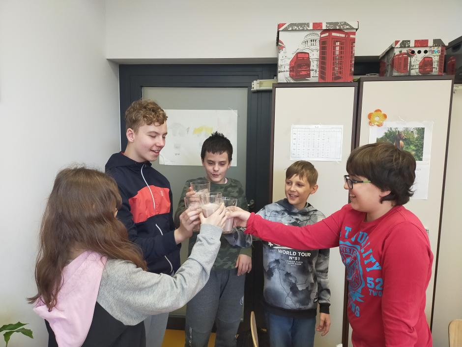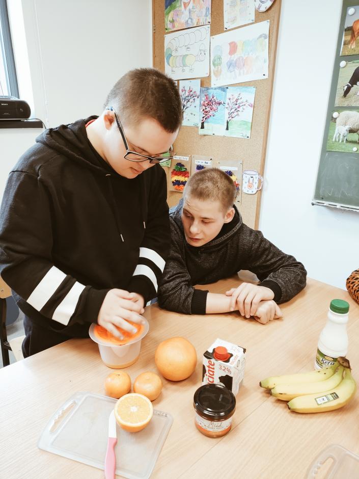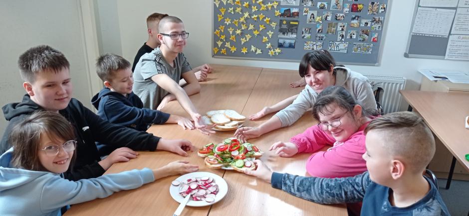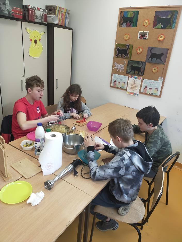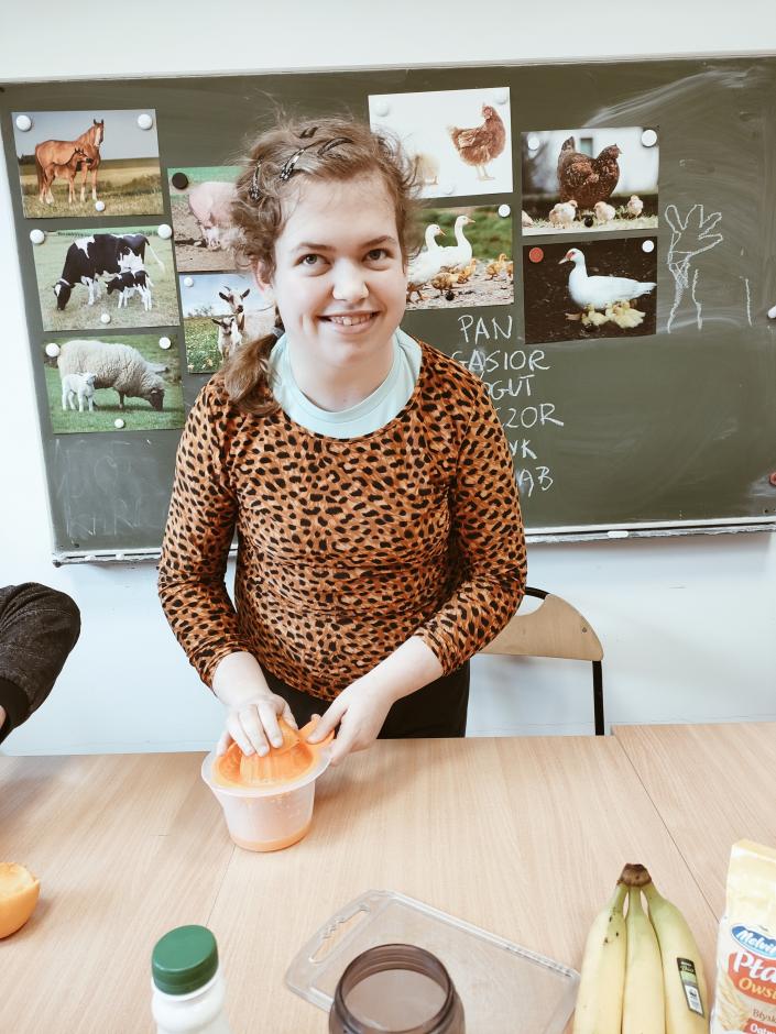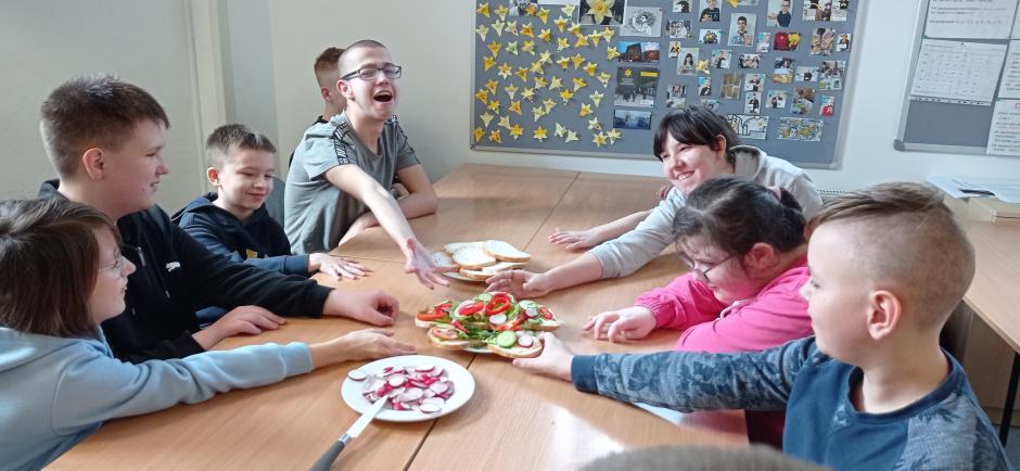 Przy przygotowywaniu przekąsek, kanapek i koktajli wykorzystano sprzęt (noże, deski, talerze, blender) otrzymany w ramach programu Laboratorium Przyszłości ..