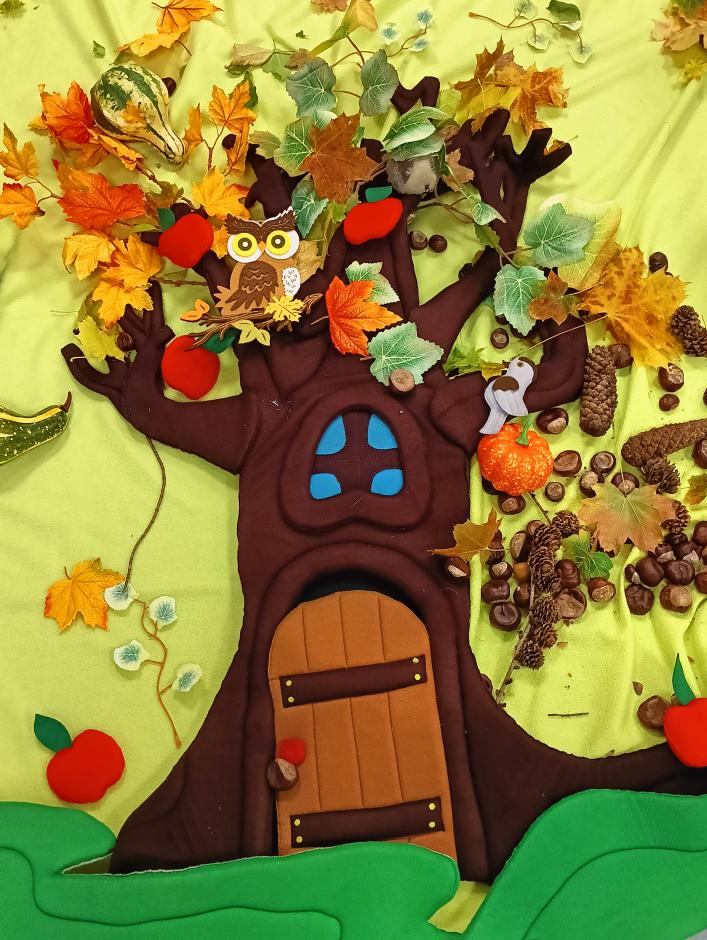 Zajęcia realizujemy 1x w miesiącu. Dzieci wykonują zadanie określone w temacie przez organizatora akcji. Przygodę rozpoczęliśmy od wykonania sensorycznego obrazu. Marta, Karol i Jakub stworzyli piękne, jesienne drzewo. Korzystali z darów jesieni, liści, warzyw, owoców oraz wielu elementów kreatywnych. Do samodzielnego przygotowania gluta użyliśmy kleju