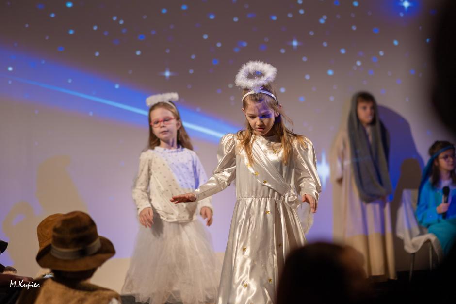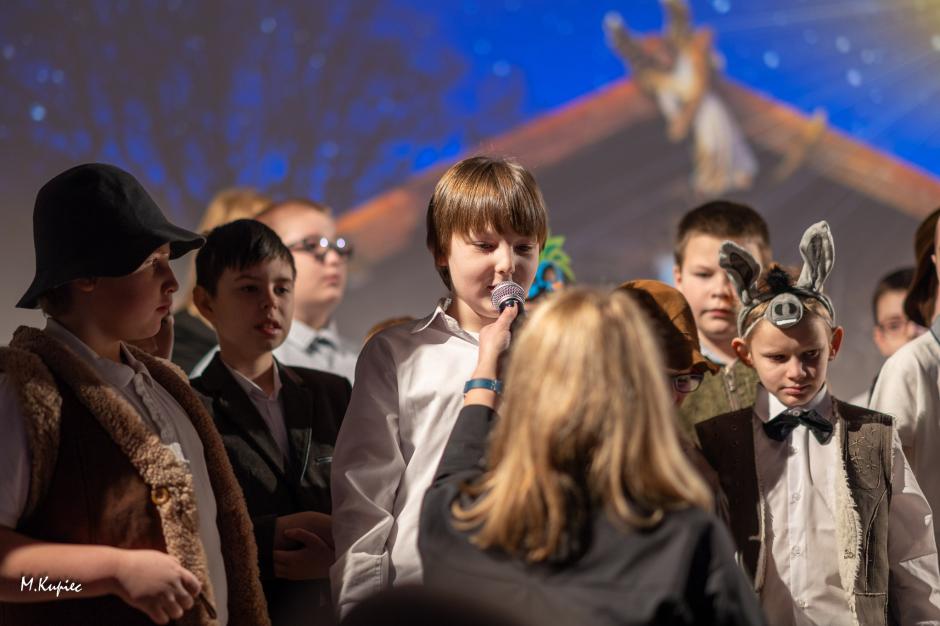 W dniu 17 stycznia 2024r. mieliśmy zaszczyt gościć w naszej szkole Babcie i Dziadków najmłodszych uczniów z klas 1-3. Dziadkowie oraz towarzyszący im rodzice uczniów mogli zobaczyć przedstawienie jasełkowe oraz wysłuchać wierszy i życzeń z okazji zbliżającego się Dnia Babci i Dziadka. Wspólne świętowanie kontynuowano przy świątecznych stołach, gdzie po słodkim poczęstunku mogliśmy jeszcze wspólnie kolędować i wysłuchaliśmy wielu śmiesznych anegdot i wspomnień opowiadanych przez seniorów.