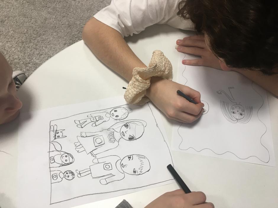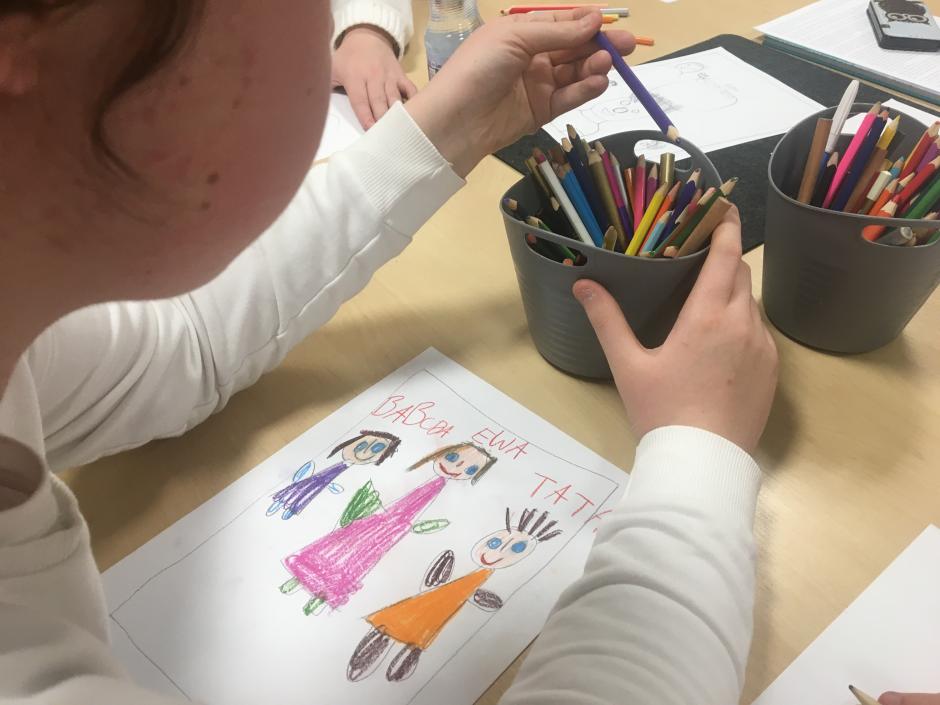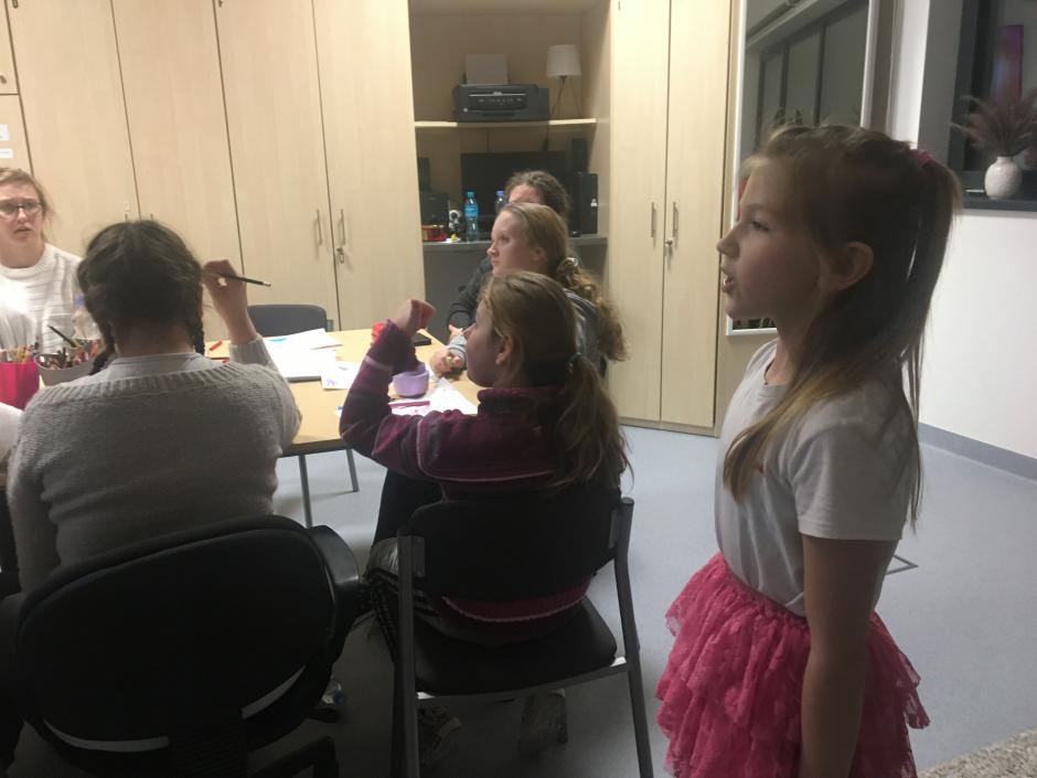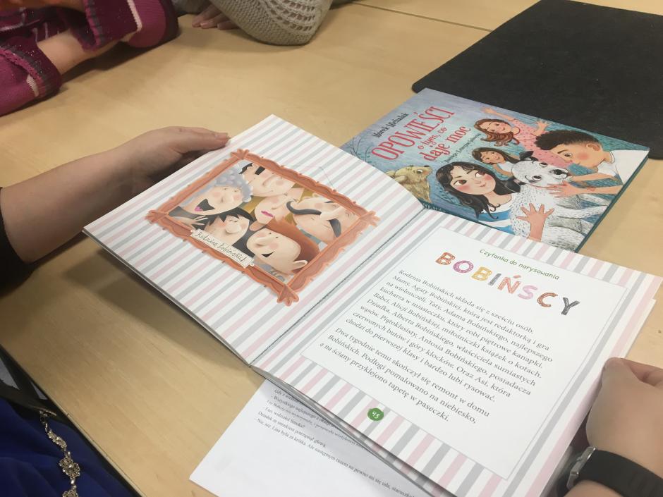 Tematem spotkania był „Dzień Babci i Dziadka”. Na wstępie pani Ania przeczytała krótką opowieść o tym, co daje moc „Historia starości i młodości”.. Po czytance odbyła się pogadanka związana z treścią utworu, trudności w funkcjonowaniu osób starszych, szacunku do nich, udzielania im wsparcia. Potem uczestniczki spotkania wymieniły się informacjami dotyczącymi swoich babć i dziadków, tradycji rodzinnych. Dziewczęta w skupieniu wysłuchały też opowiadania o rodzinie „Bobińskich”. Na podstawie opisu zawartego w czytance do rysowania powstały przepiękne portrety rodzinki Bobińskich. Wiktoria zaśpiewała dla wszystkich babć i dziadków piosenkę z repertuaru „Śpiewające Brzdące.”