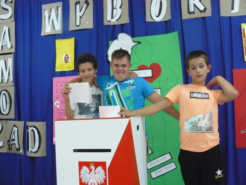 Po ognisku, w jadalni zapoznano wychowanków z zasadami wyborów i przeprowadzono głosowanie.