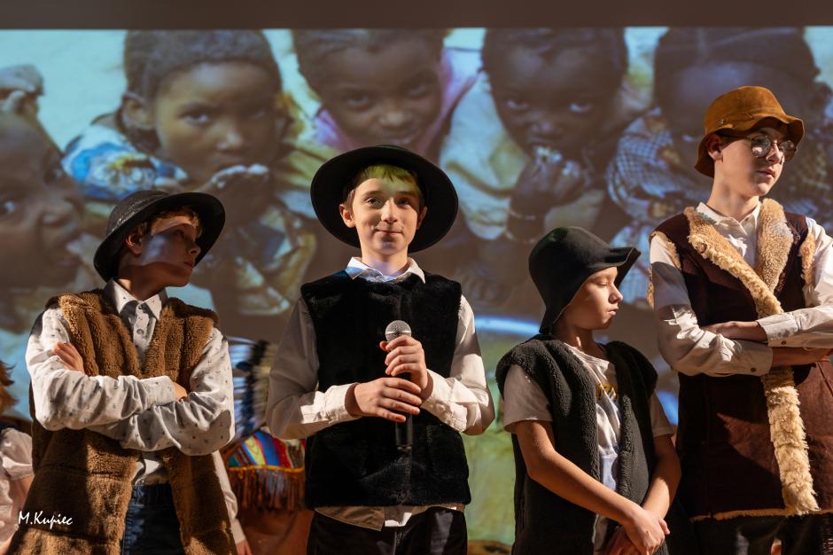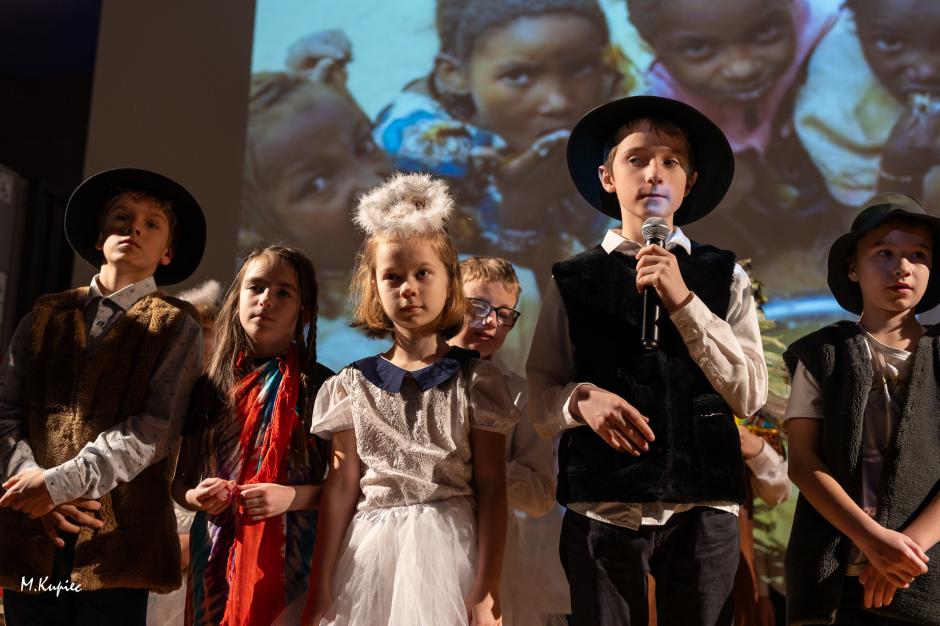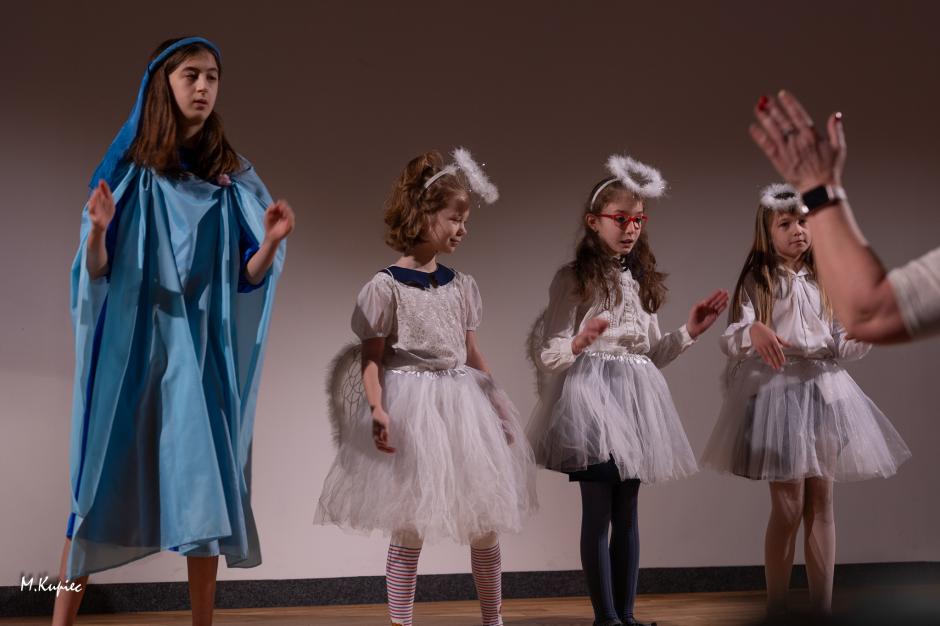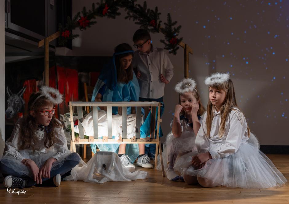 W dniu 19.12.2024 nasi uczniowie z klasy 5a, 6a, 1a,1ac, 2a, 1b i 4b zaprezentowali nam przedstawienie jasełkowe pt.: „I my dzieci Jezuskowi swe serca składamy”. Wspólne kolędowanie i przeżywanie tradycji świąteczny przybliżyły nam sceny z życia Jezusa. Bardzo ważnym przesłaniem tegorocznych jasełek była modlitwa o pokój, w czasie gdzie na Świecie toczą się wojny, a ich największymi ofiarami są dzieci.