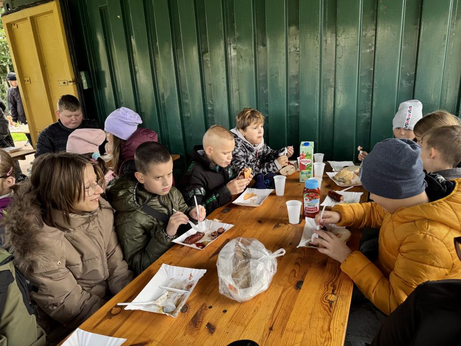 Po aktywności fizycznej przyszedł czas na posiłek, dzięki uprzejmości Koła Polskiego Związku Wędkarskiego Oświęcim – Miasto, mogliśmy cieszyć się smakiem kiełbasek z grilla, które spożywaliśmy, podziwiając staw Kamieniec oraz jego mieszkańców.