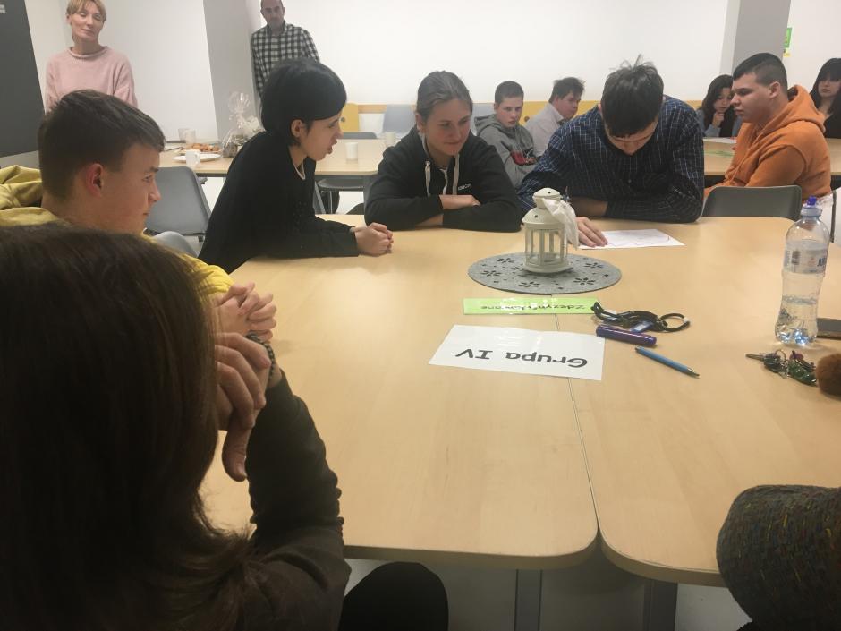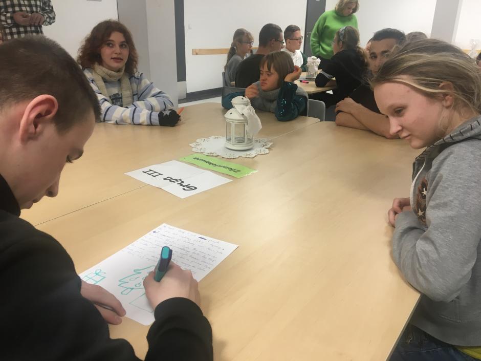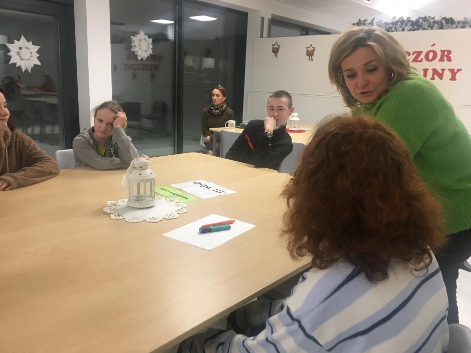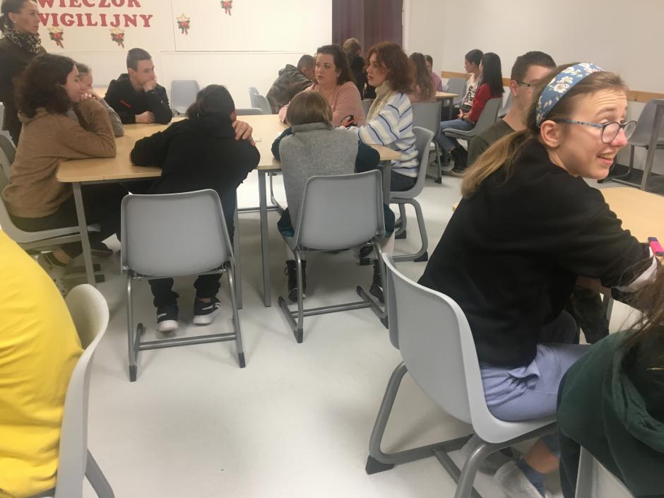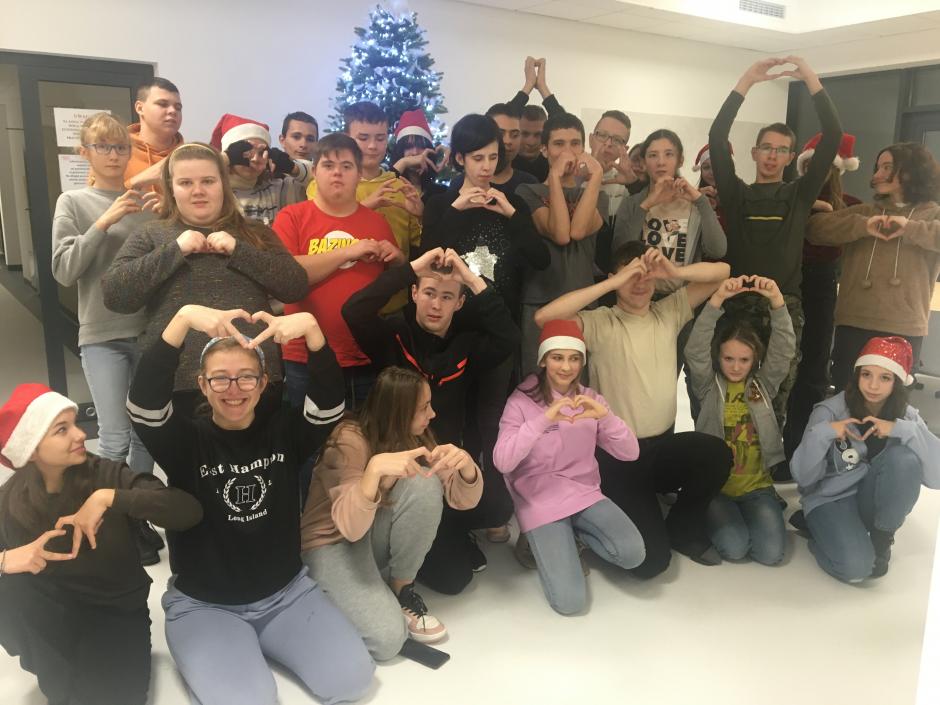 z opiekunem wolontariatu, panią Marzeną, wychowawcami, specjalistami i wychowankami internatu uczestniczyli w zintegrowanych warsztatach literacko-plastycznych związanych ze świętami Bożego Narodzenia. Spotkanie było świetną okazją do zapoznania się, wspólnej zabawy, biesiady, złożenia życzeń świątecznych i noworocznych.