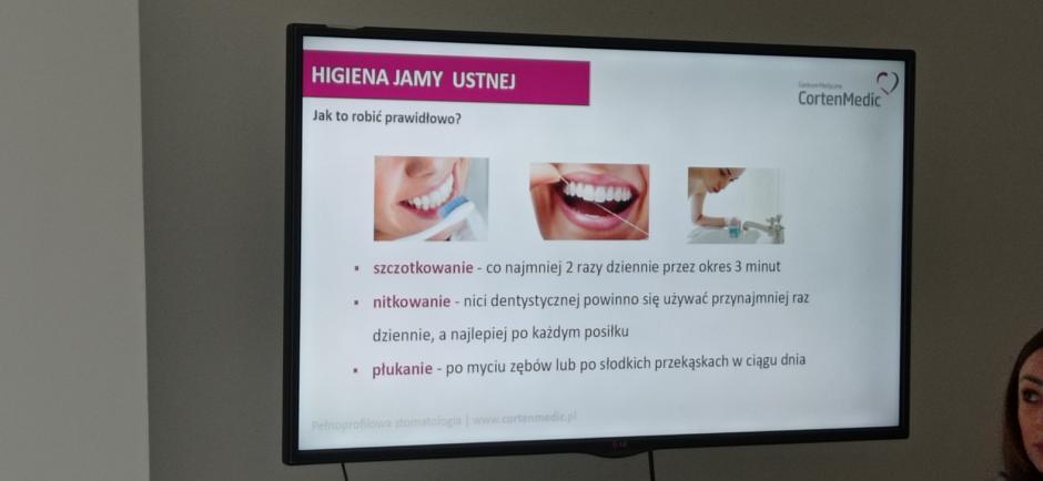 Na zajęciach uczniowie utrwalali wiedzę i umiejętności z zakresu budowy, rodzajów i funkcji zębów, prawidłowego ich szczotkowania, nitkowania i płukania a także higieny języka. Poznawali jaką rolę w dbaniu o zdrowe zęby pełni odżywianie, regularne wizyty u stomatologa, dobór odpowiedniej szczoteczki czy pasty do zębów, poznali zależności pomiędzy kondycją jamy ustnej, chorób wywołanych brakiem prawidłowej jej pielęgnacji, a zdrowiem całego organizmu. Zajęcia miały również na celu zachęcenie uczniów do regularnych przeglądów stomatologicznych.