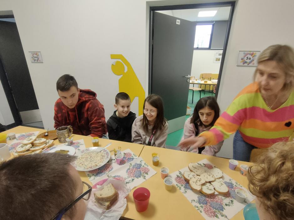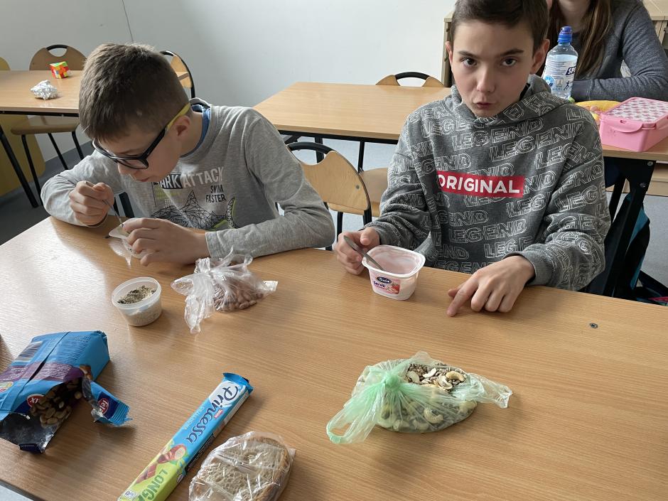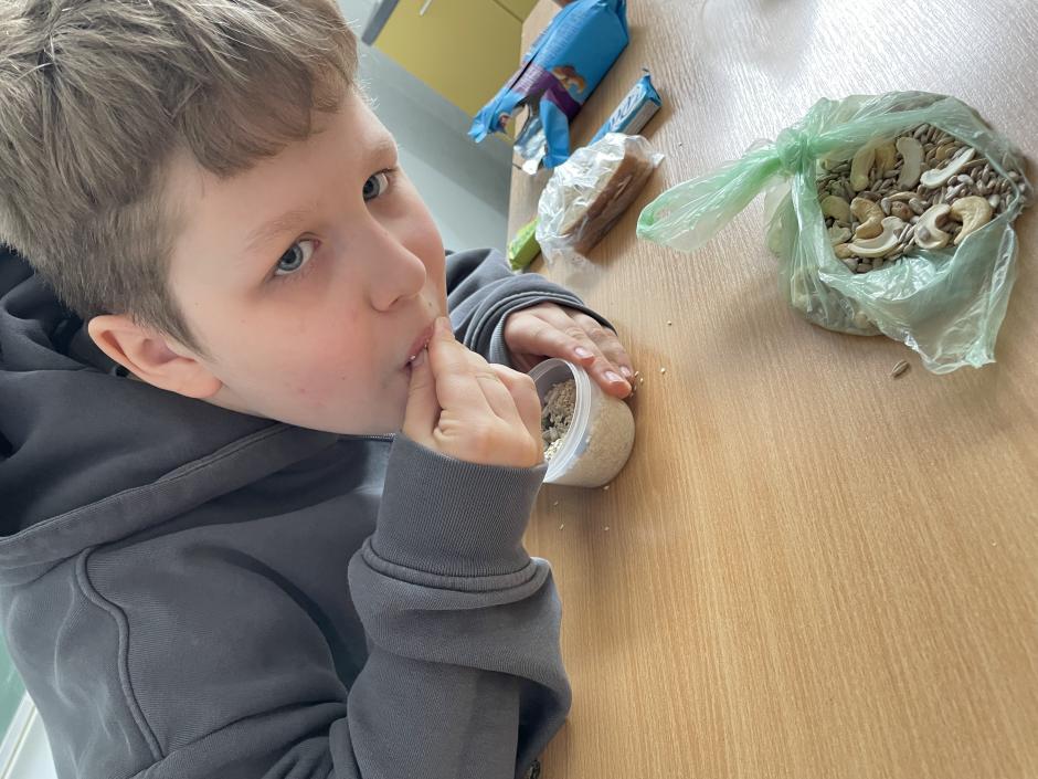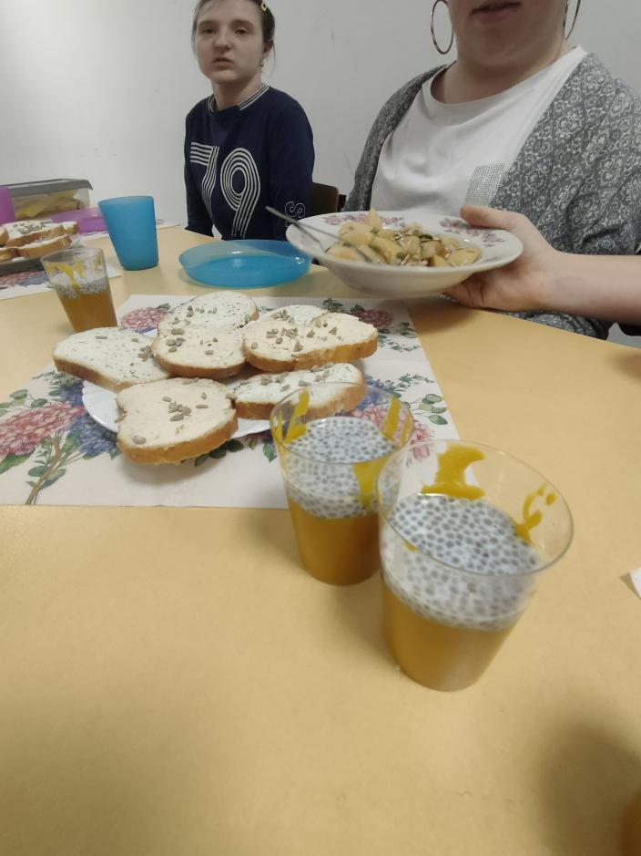 Ostatnim etapem spotkania było przygotowanie przekąsek z ziarnami, które mają szerokie zastosowanie w kuchni, dlatego na stołach pojawiły się kanapki, posypane ziarnami słonecznika, pestkami dyni, kolorowe koktajle z owocami i nasionami chia, siemieniem lnianym, sezamem, orzechami, chleby i ciasteczka ziarnami, desery z orzechami i nasionami.