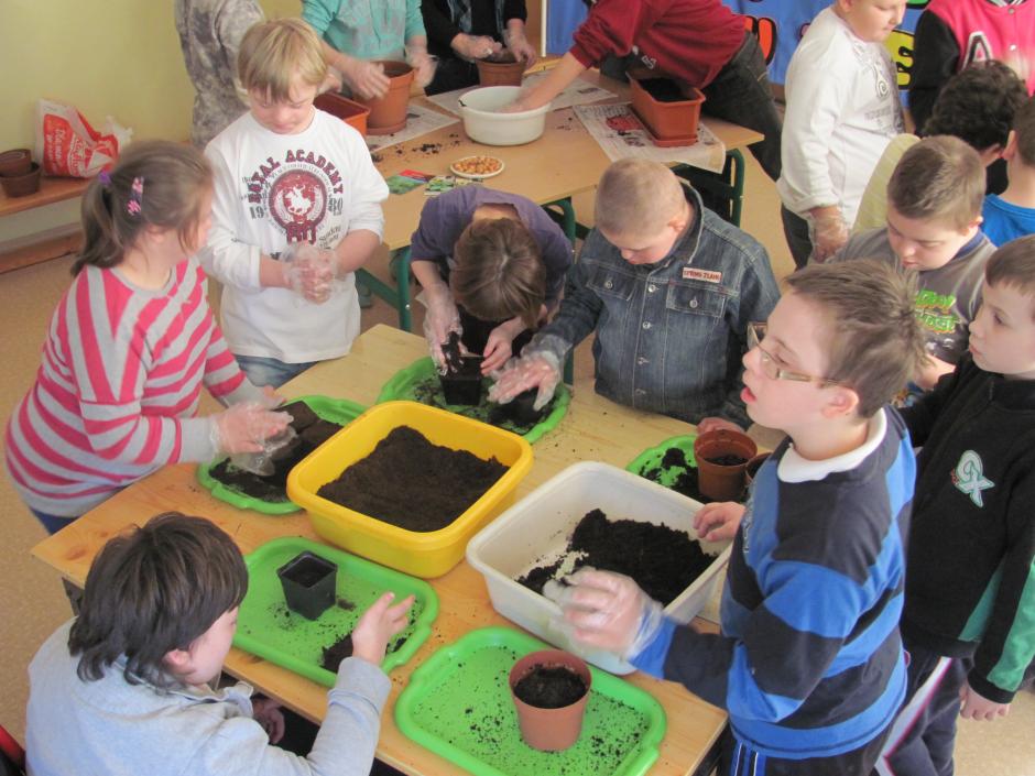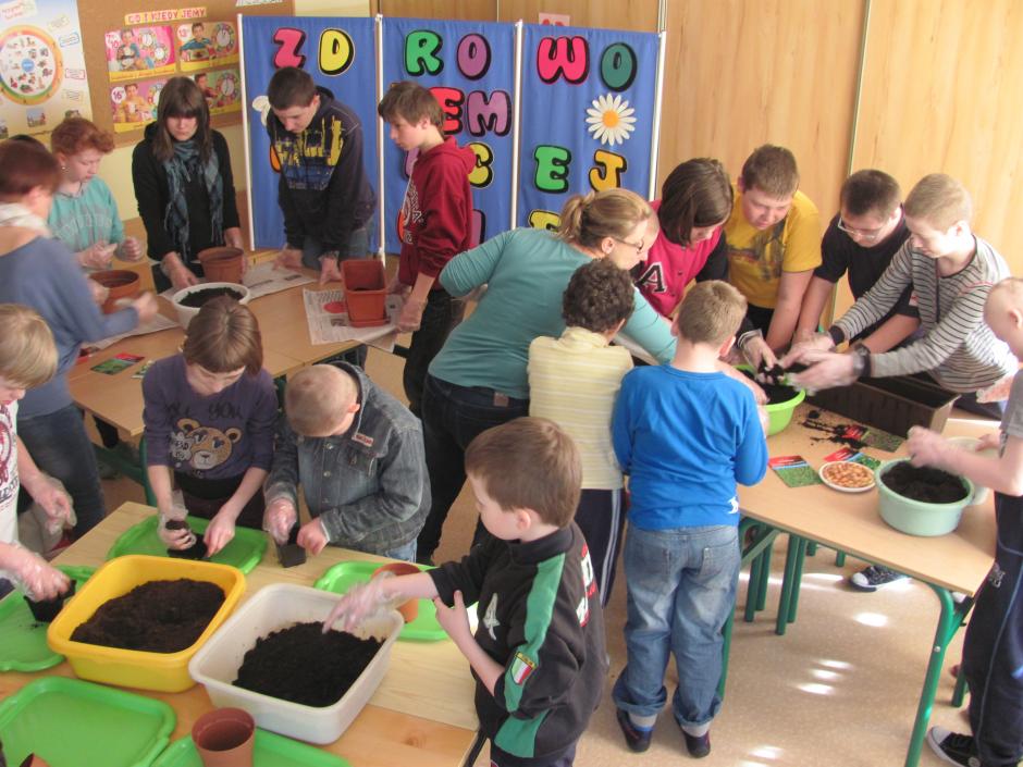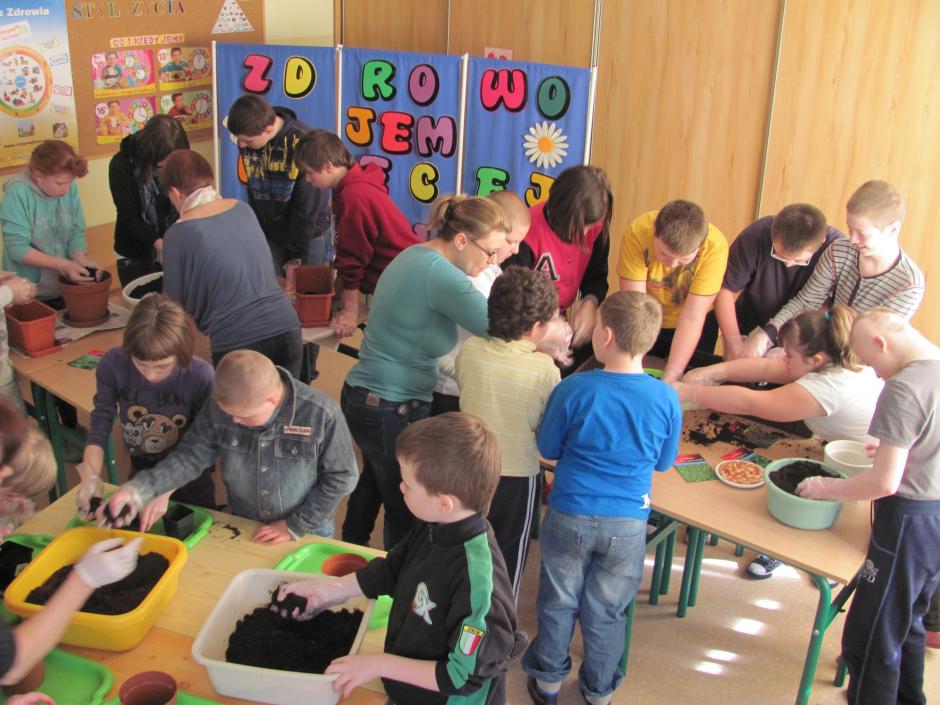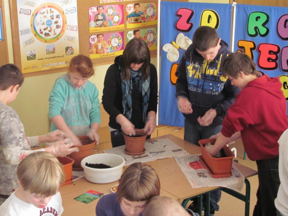 21 marca witaliśmy kalendarzową wiosnę nieco inaczej, niż co roku. Zakładaliśmy szkolne ogródki ziołowe. Było pachnąco i pracowicie. Jedna z sal zamieniła się w prawdziwą pracownię ogrodnika. Uczniowie napełnili skrzynki ziemią. Zasiali w nich nasiona ziół, których tajniki zgłębili na przygotowanej prezentacji z pogadanką. Od tej pory będą obserwować fazy rozwoju roślin i prowadzić systematycznie Dziennik Obserwacji.