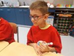 22 listopada pierwsze klasy obchodziły Dzień Kredki. Zajęcia rozpoczęły się od wirtualnej wizyty w fabryce kredek i ołówków „Bambino”. Następnie kredki znalazły się w centrum oddziaływań dzieci, które przekonały się, że nie służą one tylko do kolorowania, że kredki to świetna zabawa. Pierwszaki poznawali, rozróżniali i segregowali różne rodzaje kredek. Układali kredkowe wzory, sekwencje, szeregi. Uczestniczyli w zabawach ruchowych „kredka do kredki”, „taniec kredek”. Przebrane za kredki tańczyły do znanych piosenek o kredkach, z których najpopularniejszą była „Kolorowe kredki”. Wszyscy uczestnicy tego święta otrzymali też przygotowane na ten dzień odznaki.