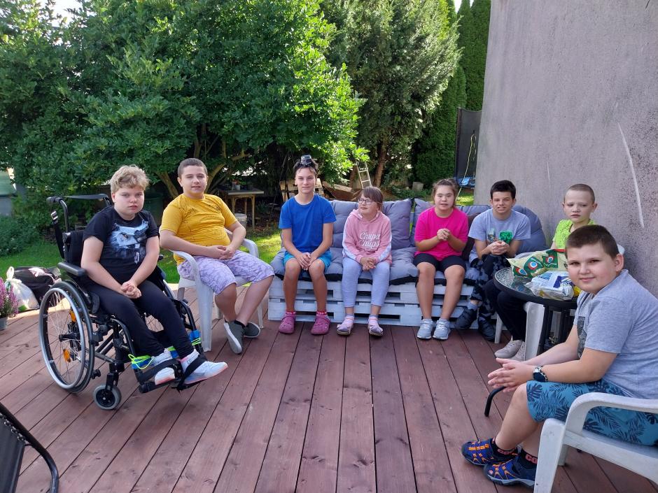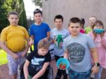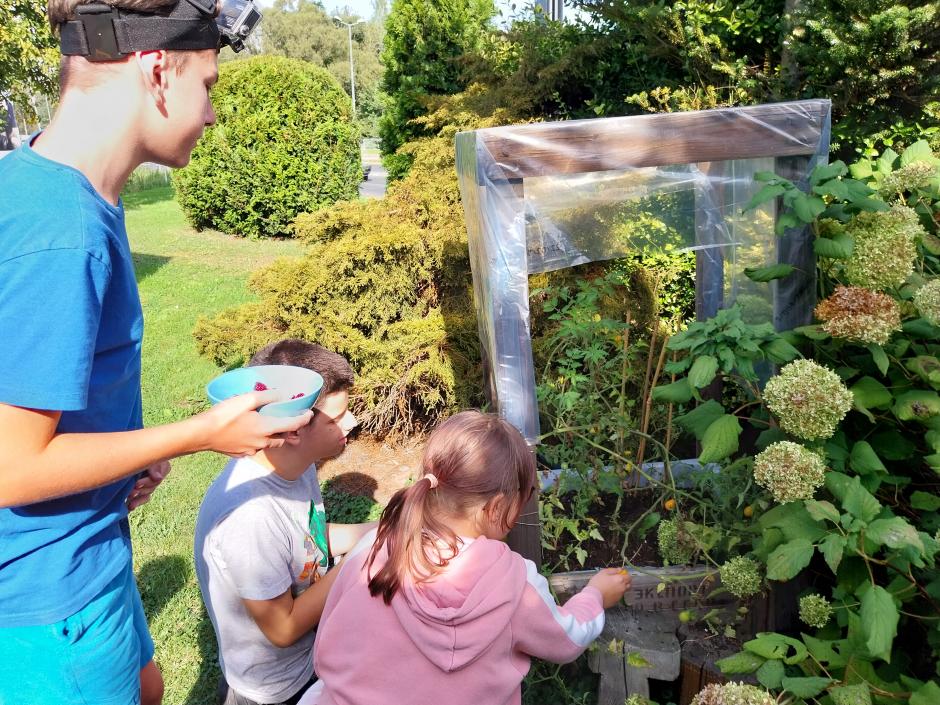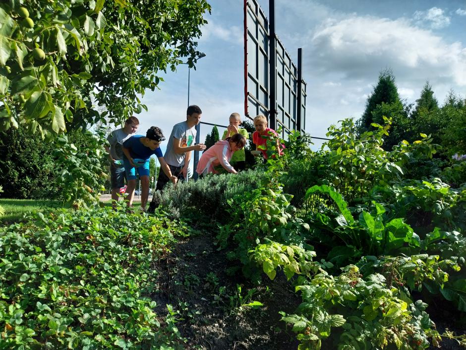 Lato pożegnało nas obfitymi darami, o czym mieliśmy okazję przekonać się uczestnicząc w zbiorach owoców i warzyw zorganizowanych w ogrodzie jednego z naszych kolegów. Z owoców wykonaliśmy pyszny deser, a z warzyw i aromatycznych ziół – zdrową sałatkę. W zabawach na świeżym powietrzu towarzyszył nam czworonogi przyjaciel gospodarzy. Lato dobiegło końca, ale wspomnienia chwil spędzonych w otoczeniu przyrody pozostaną z nami jeszcze na długo.