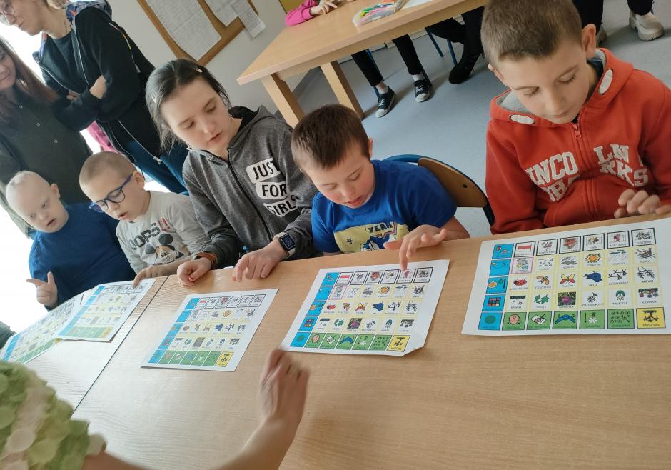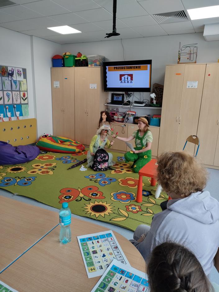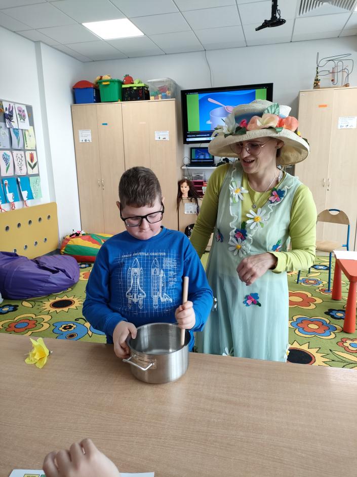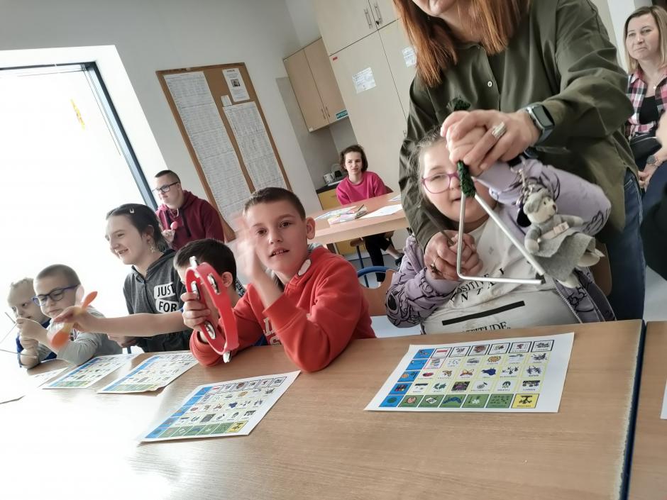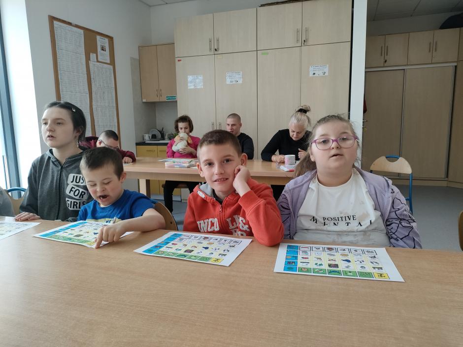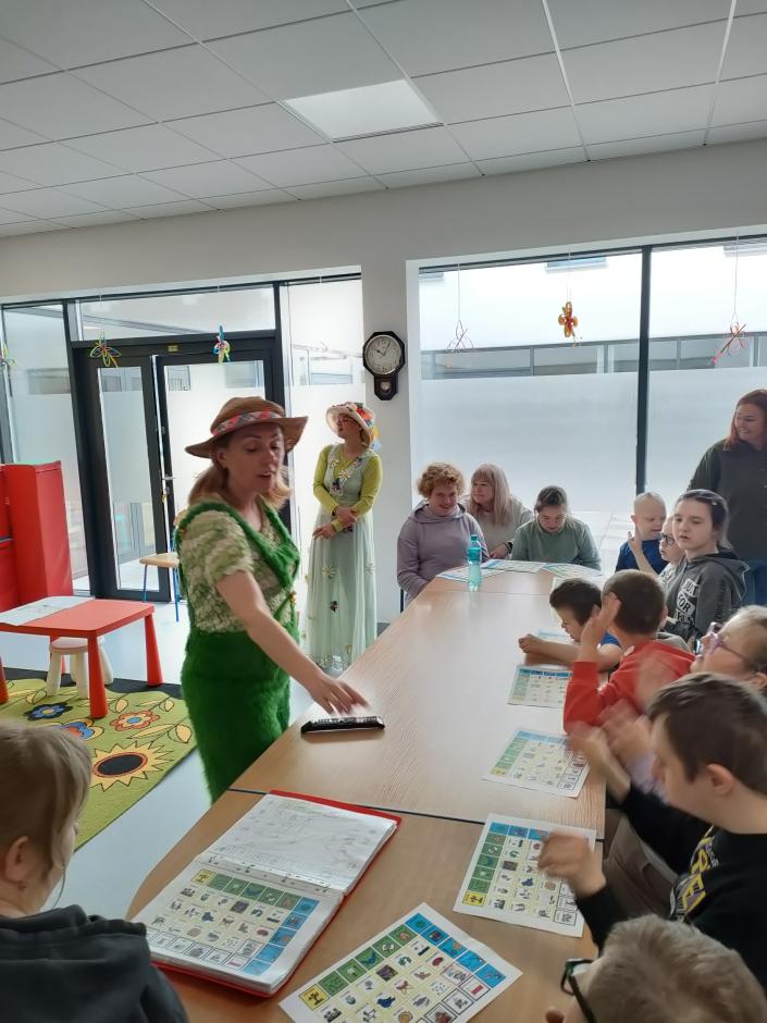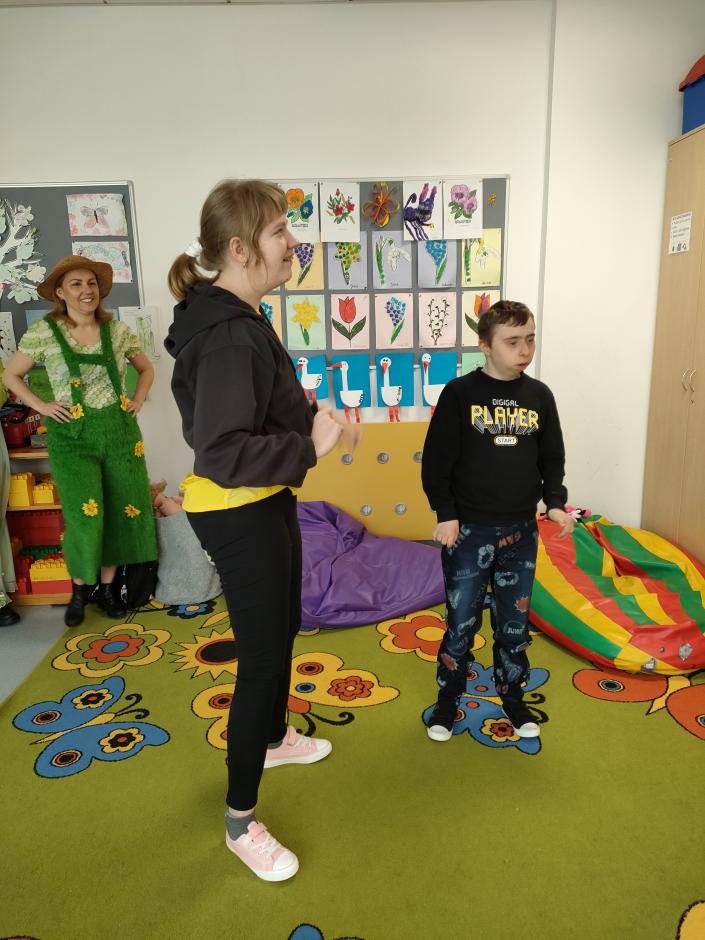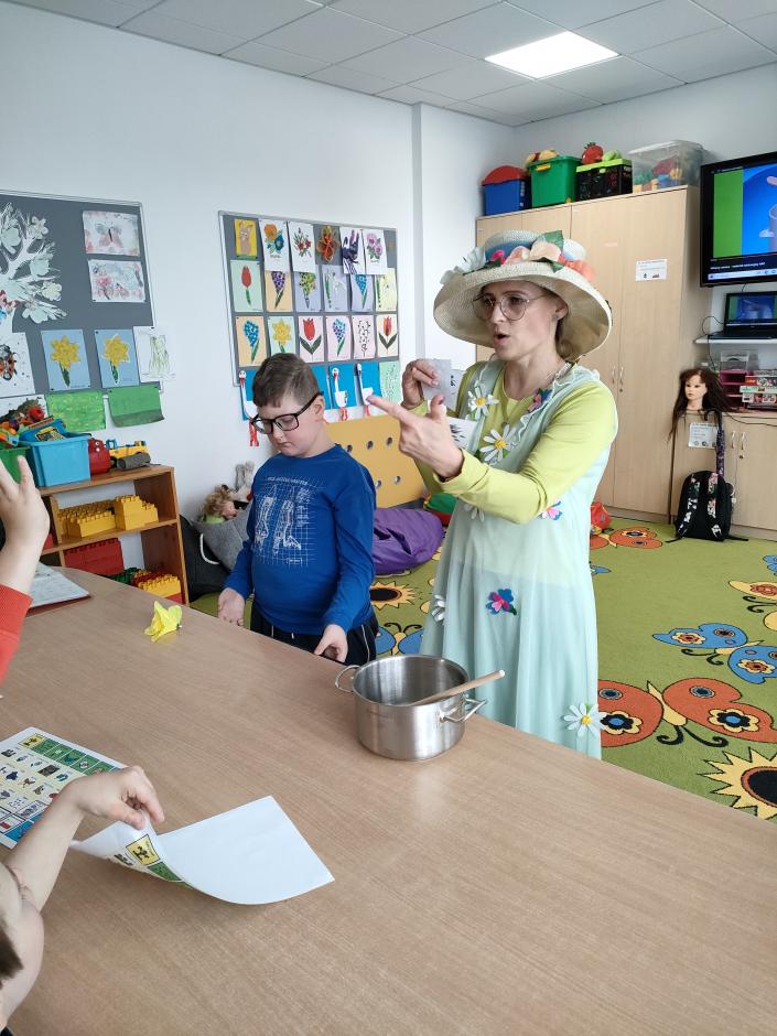 23 kwietnia zapragnęliśmy się z nią zobaczyć i dlatego wspólnie przywitaliśmy ja na kolejnym AAC-owym spotkaniu. Mieliśmy okazję zobaczyć przedstawienie pt. „Jak ślimak spotkał Wiosnę”, w którym zagrały panie Asia i Aga. Uczyliśmy się wiosennej piosenki obrazowanej gestami Makaton oraz odgadywaliśmy zagadki związane z nową porą roku. Nasze książki do komunikacji wzbogaciły się o nowe tablice z symbolami. Teraz możemy wygrzewać się w wiosennym słoneczku i rozmawiać o tej pięknej porze roku. Witaj Wiosno!