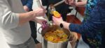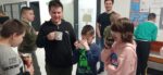 Uczniowie ubrani w błękitno-granatowe stroje wraz z wychowawcami ustawili się w kolejce do wody, wzdłuż płynącej przez hol „rzeki”. Każdy tego dnia skosztował kilka łyków zdrowej wody, której codziennie powinniśmy wypijać ok. 2 litrów. Naszych uczniów czekała miła niespodzianka, woda, której kosztowali zawierała plasterki pomarańczy i cytryn. Smakowała wyśmienicie! Warto było czekać w kolejce!