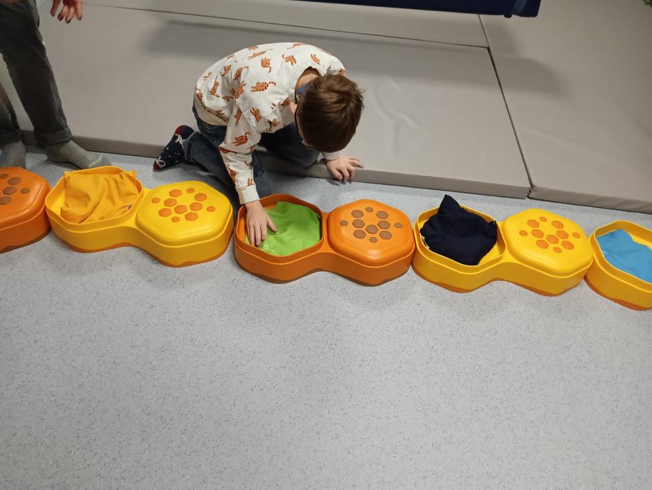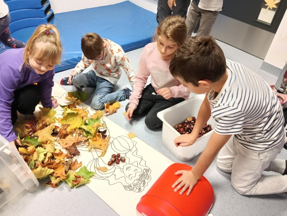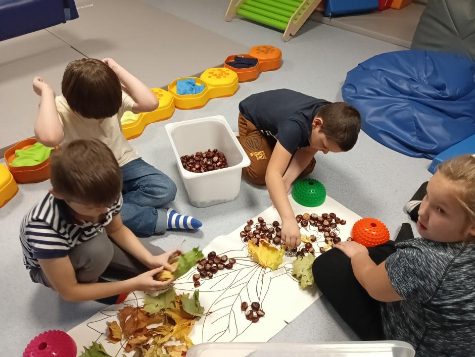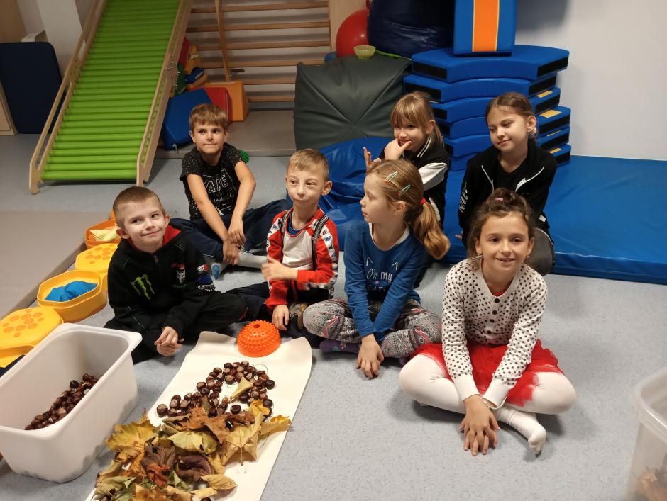 W zajęciach sensoryczno – motorycznych uczestniczyli uczniowie klas 1-3. Zajęcia są prowadzone w ramach zajęć cyklicznych „Cztery pory roku w integracji sensorycznej”.