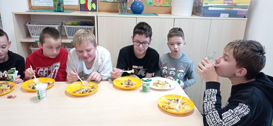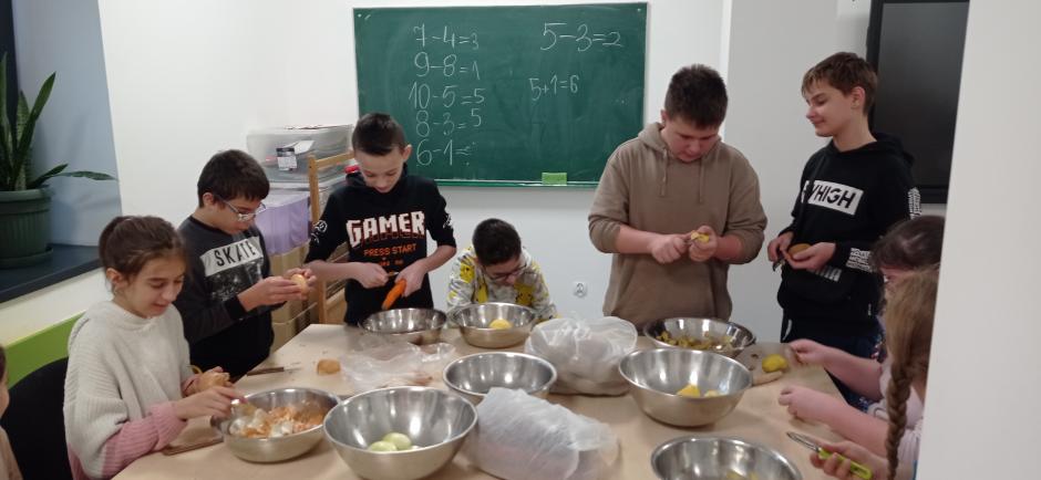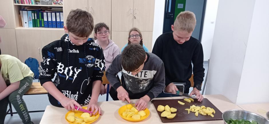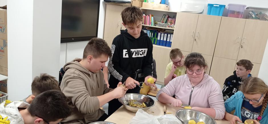 Kolejnym etapem działań było przygotowanie popularnej w naszym regionie potrawy z ziemniaków czyli prażonych!