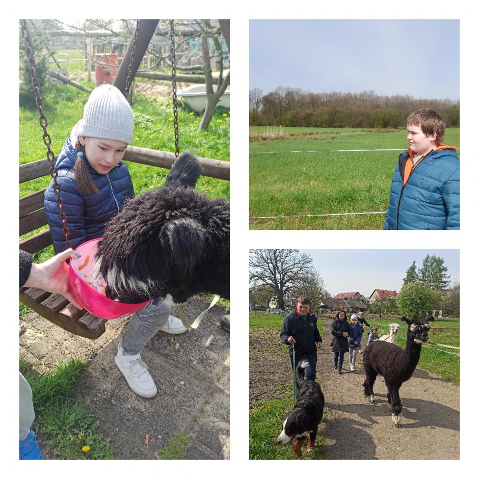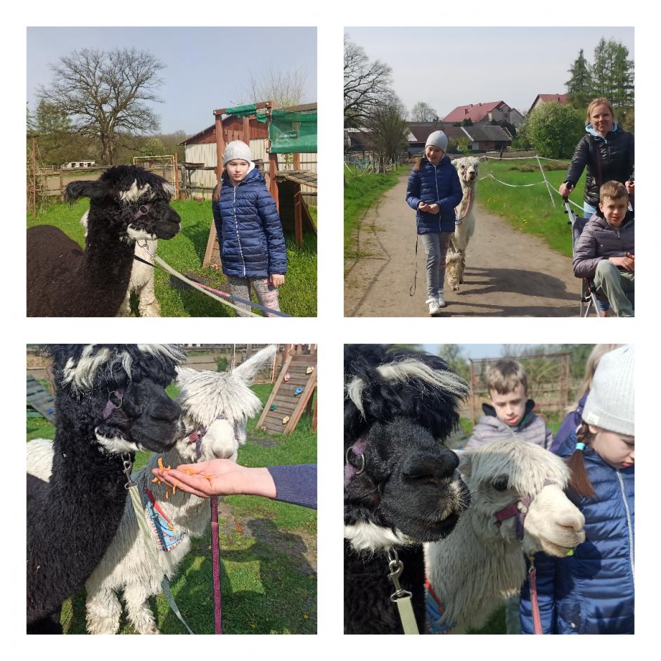 Dnia 28 kwietnia uczniowie klasy 2c i 6b uczestniczyli w zajęciach edukacyjnych z przyjaznymi alpakami oraz psem. Uczniowie mieli okazję dowiedzieć się skąd alpaki pochodzą, w jakim celu są hodowane oraz jak należy o nie dbać.