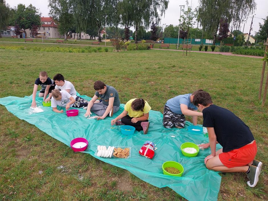 29 maja 2024 Sensoplastyczne wariacje w plenerze Podsumowując cykl całorocznych zajęć Sensoplastyka uczniowie klas 5d i 6b, wyzwalając swoją ekspresję twórczą, stworzyli na łonie natury obraz pt. „Łąka”. Do pracy wykorzystano naturalne produkty spożywcze.