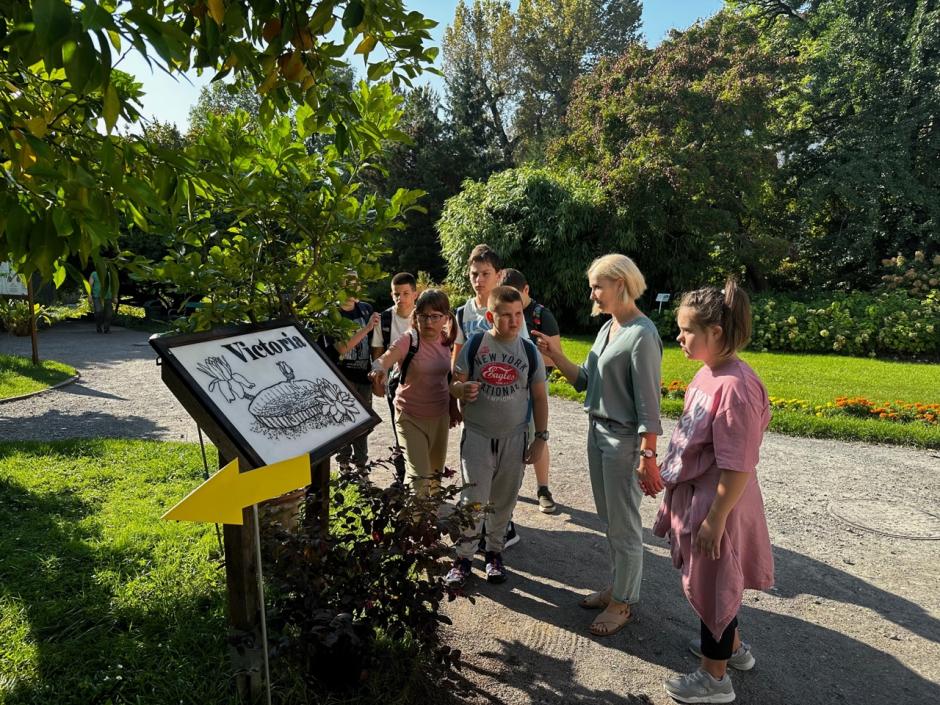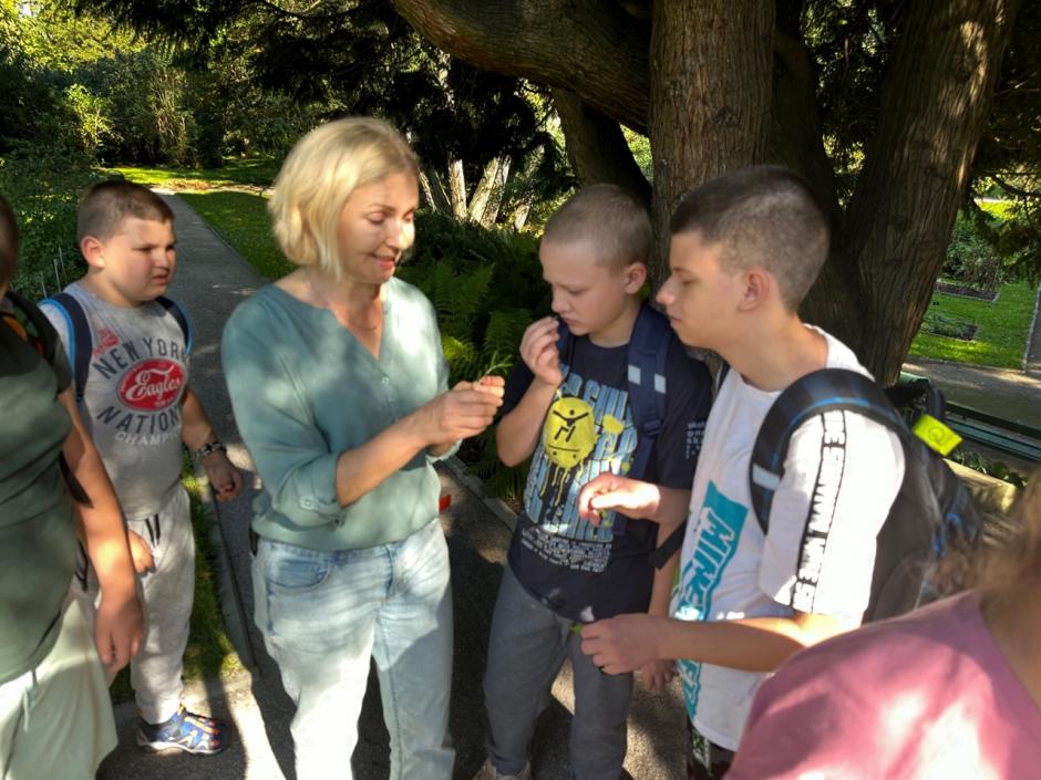 Już na wstępie przywitał nas sad bananowy oraz grójecznik pachnący chlebem. Podczas obserwacji jesiennych zmian w przyrodzie dowiedzieliśmy się wielu ciekawostek, między innymi, że znajdujemy się w najstarszym Ogrodzie Botanicznym w Polsce, który ma już 245 lat. Mieliśmy również okazję spróbowania kasztanów oraz owoców derenia jadalnego. Spośród wielu obserwowanych roślin i ziół, najbardziej w pamięci utkwiło nam „boże drzewko”, którego liście wykorzystywane są do produkcji coca – coli. Poznaliśmy także znaczenie powiedzenia „delikatny jak mimoza”, co oznacza roślinę, która zamyka się pod wpływem dotyku.