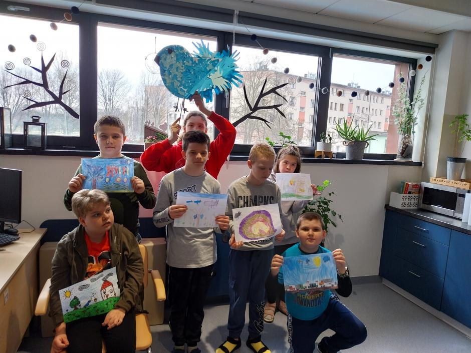 Kwiecień jest miesiącem świadomości autyzmu. W związku z tym uczniowie klas 5c i 6d w ramach programu „Kto nie czyta, ten traci…” stworzyli opowieść o niebieskim ptaku, którą przedstawili w formie historyjki obrazkowej. Urozmaiceniem zajęć było wspólne wykonanie bohatera opowieści w symbolicznym niebieskim kolorze.