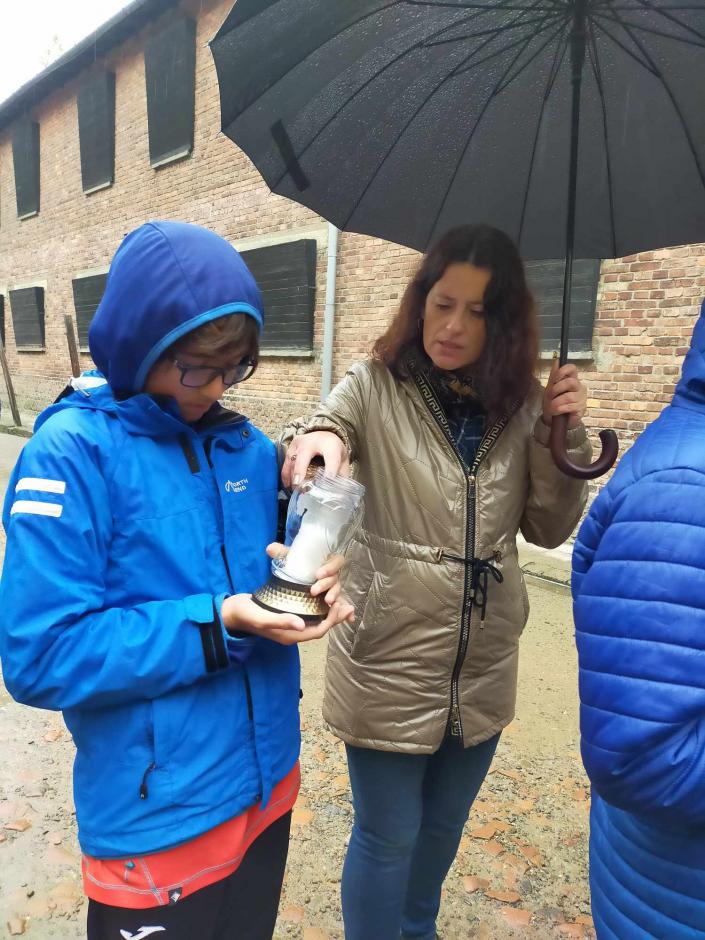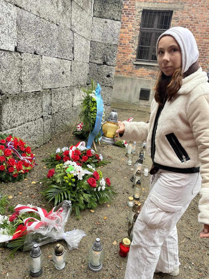 W ramach akcji uczniowie złożyli znicze pod Ścianą Śmierci na dziedzińcu bloku 11, upamiętniając ofiary niemieckiego nazistowskiego obozu.