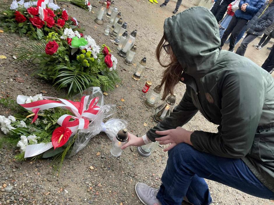 Wizyta do Miejsc Pamięci odbyła się w chłodny i deszczowy dzień. Był to czas pełen refleksji i zadumy nad przemijaniem oraz kruchością ludzkiego życia.