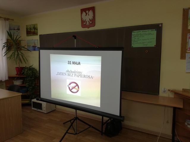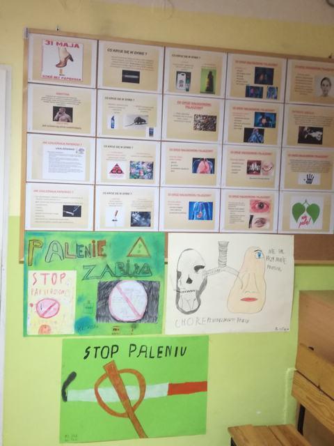 W klasach IV – VI odbyły się zajęcia profilaktyczne z zakresu promocji zdrowia oraz przeciwdziałania uzależnieniu od tytoniu. Podczas zajęć młodzież zdobyła informacje na temat konsekwencji palenia papierosów oraz pożytku płynącego ze zdrowego trybu życia. Uczniowie wykonali plakaty przedstawiające informacje dotyczące szkodliwości palenia papierosów.