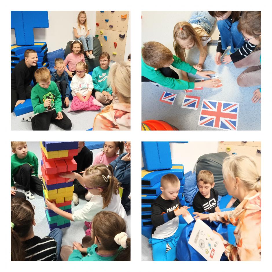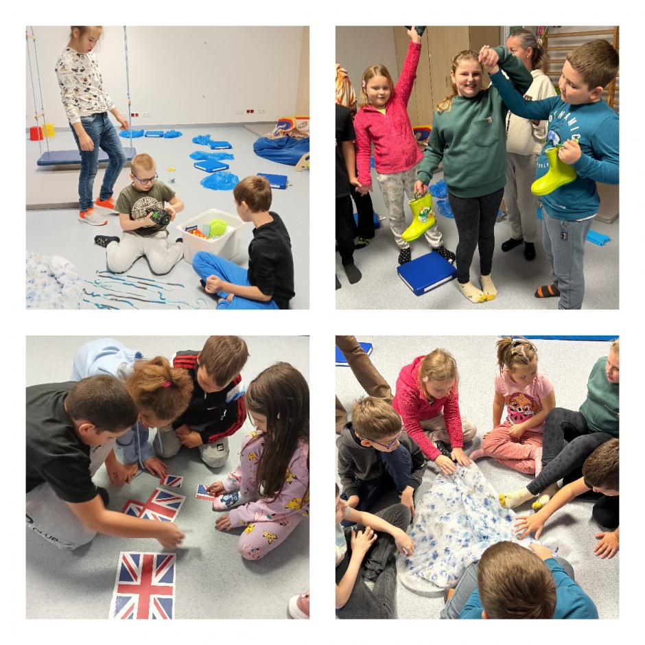 W ramach projektu edukacyjnego „Sensoryczne Podróże” odwiedziliśmy Wielką Brytanię. W spotkaniu wzięło udział 13 klas. Uczniowie podczas zajęć wybierali przedmioty charakterystyczne dla tego kraju, tworzyli deszczową chmurę, budowali wielką wieżę, układali puzzle, szukali kaloszy do pary oraz wykonali wyjątkowy taniec. Dzieci wzbogacili swoje doświadczenia zmysłowe w zakresie percepcji wzrokowej, słuchowej, dotykowej, węchowej oraz rozwinęły motorykę dużą i motorykę małą.