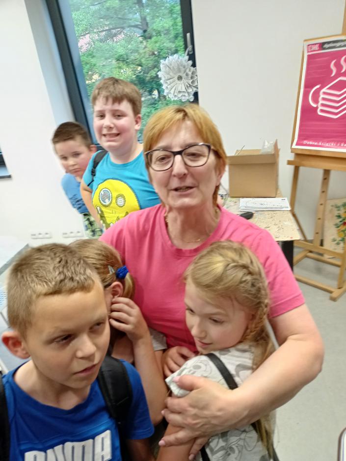 4 czerwca b. r. pomimo niesprzyjającej pogody uczniowie klas 1b, 2a, 3b, 4b, 5d, 5c wyruszyli pociągiem do Chełmka. Było to już kolejne spotkanie w Bibliotece Publicznej zorganizowane w ramach Dnia Dziecka. Podczas wizyty dzieci uczestniczyły w twórczo kreatywnych warsztatach, podczas których wykonywali swojego papierowego kotka. Kolejną atrakcją była możliwość skorzystania z bibliotecznej sala zabaw. Na zakończenie pani Bogusia przeczytała nam bajkę pod tytułem: „Czerwony Kapturek”, jednak kolejność losów Kapturka układaliśmy sami. Spotkanie przebiegło w bardzo wesołej atmosferze.