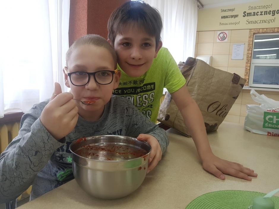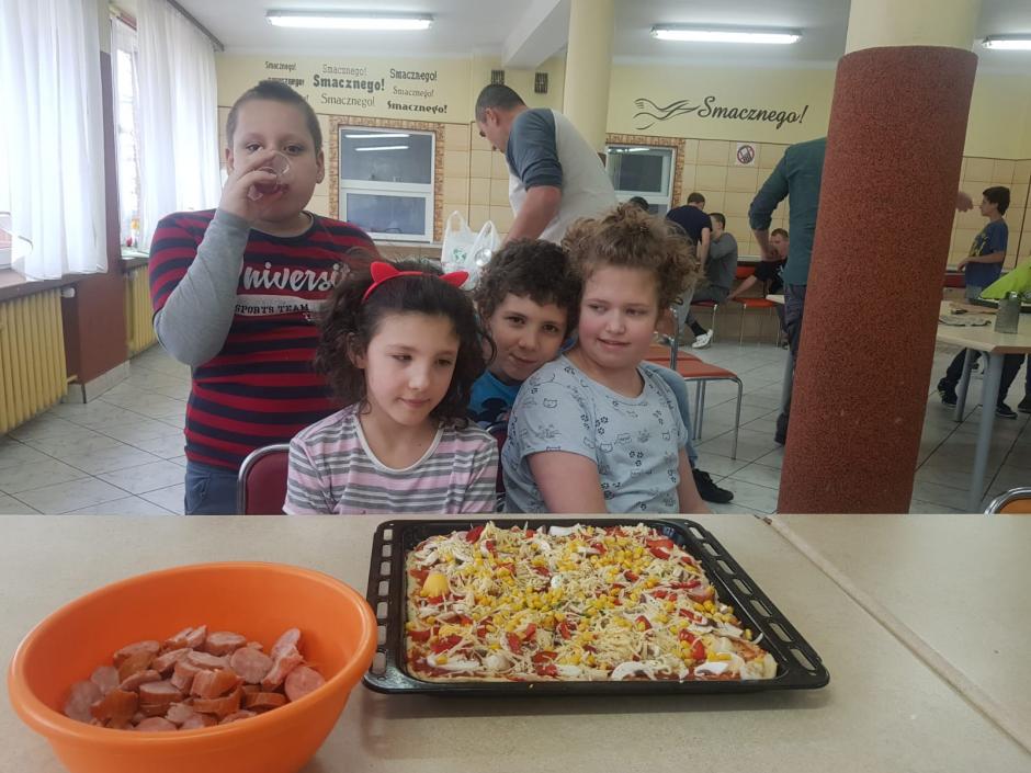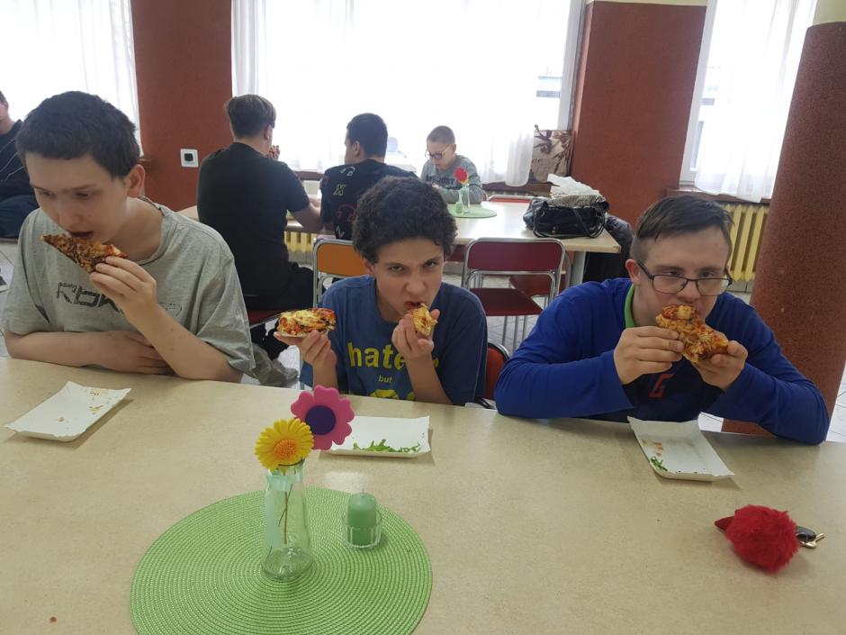 Zarówno pizza przygotowana przez grupę dziewcząt jak i ta w wykonaniu chłopców, smakowała wybornie.