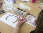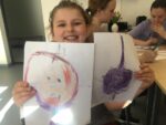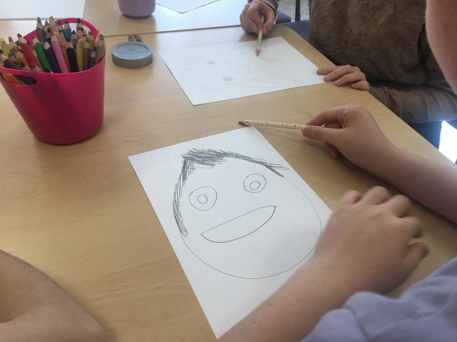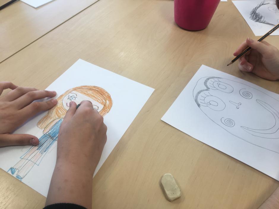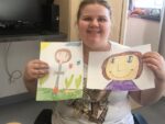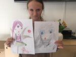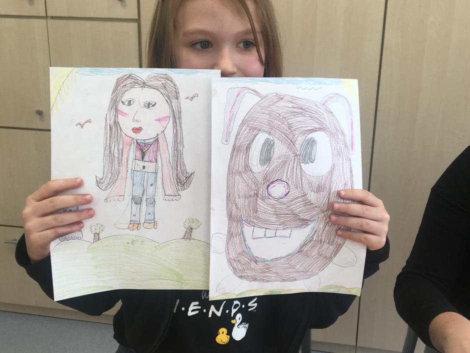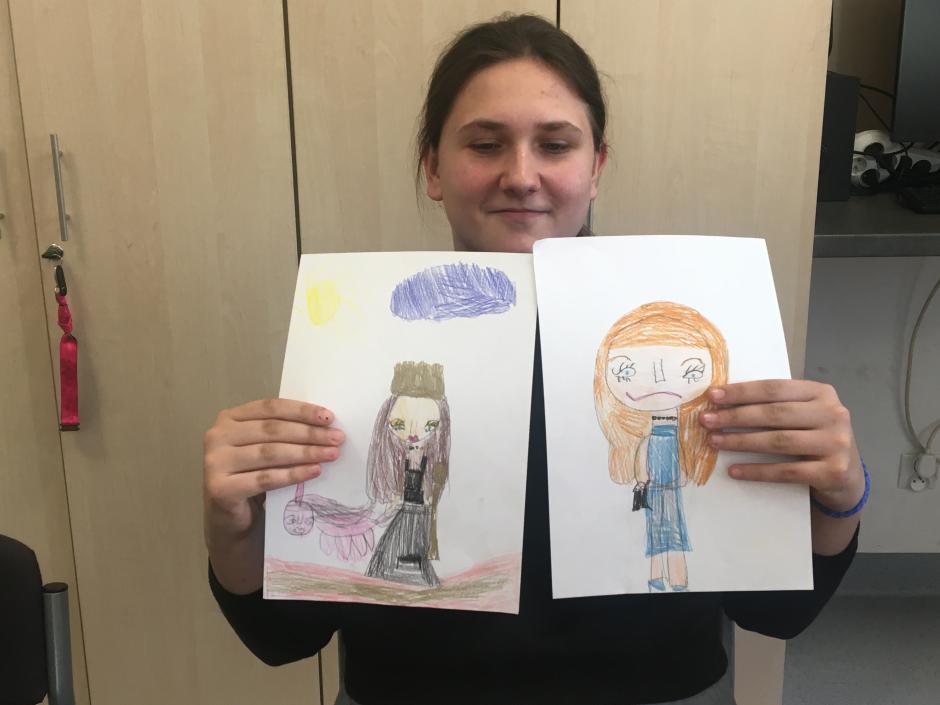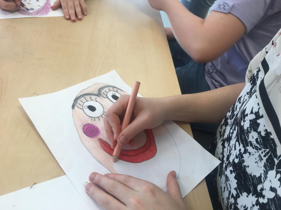 Temat spotkania: „Emocje – Niech żyje Radość!”. Wychowanki miały okazję, aby tym razem porozmawiać o emocjach, które towarzyszą nam na co dzień pozytywnych i negatywnych. Pani Ania w czytała o różnych humorkach. Po lekturze dziewczynki malowały radosny nastrój w postaci kolorowych portretów i postaci.