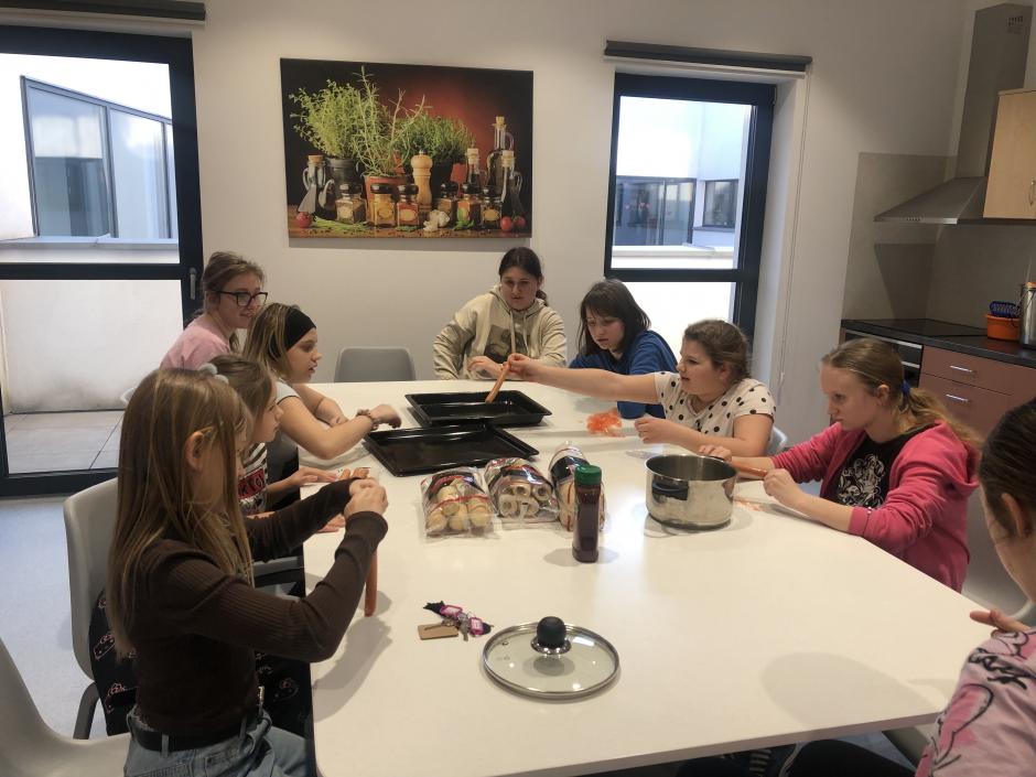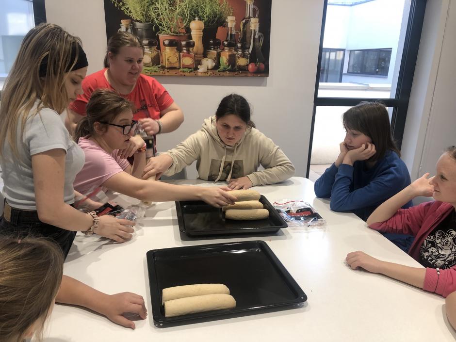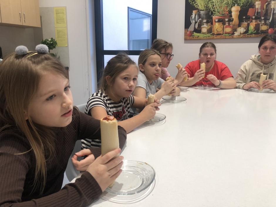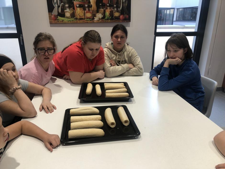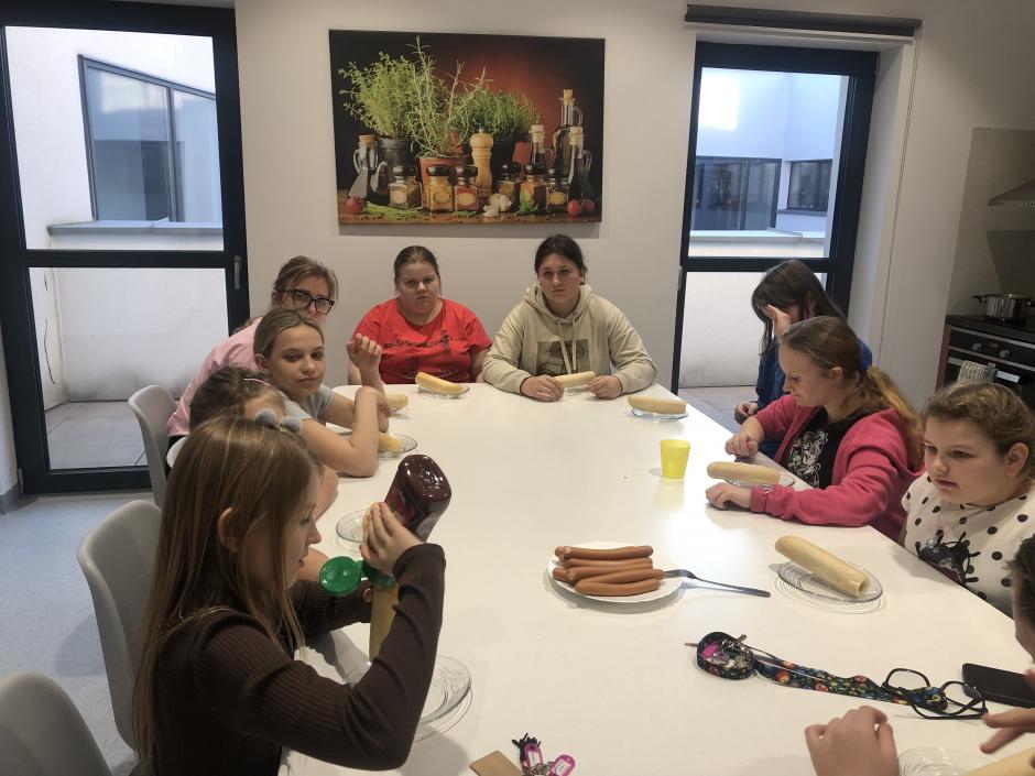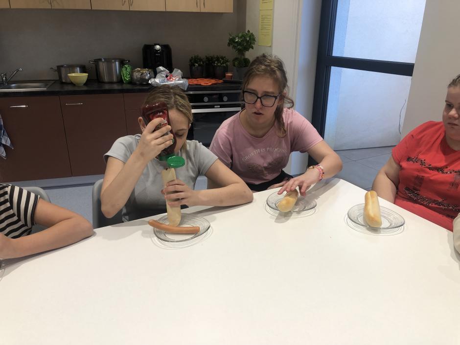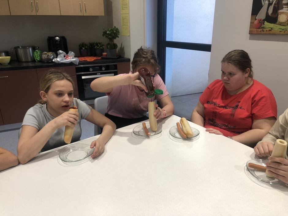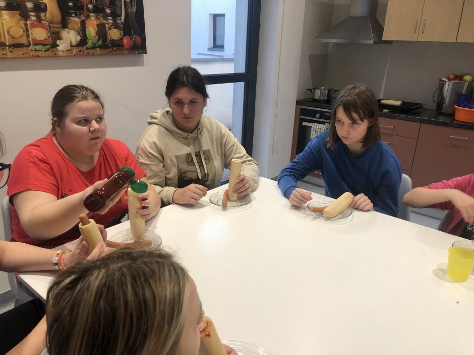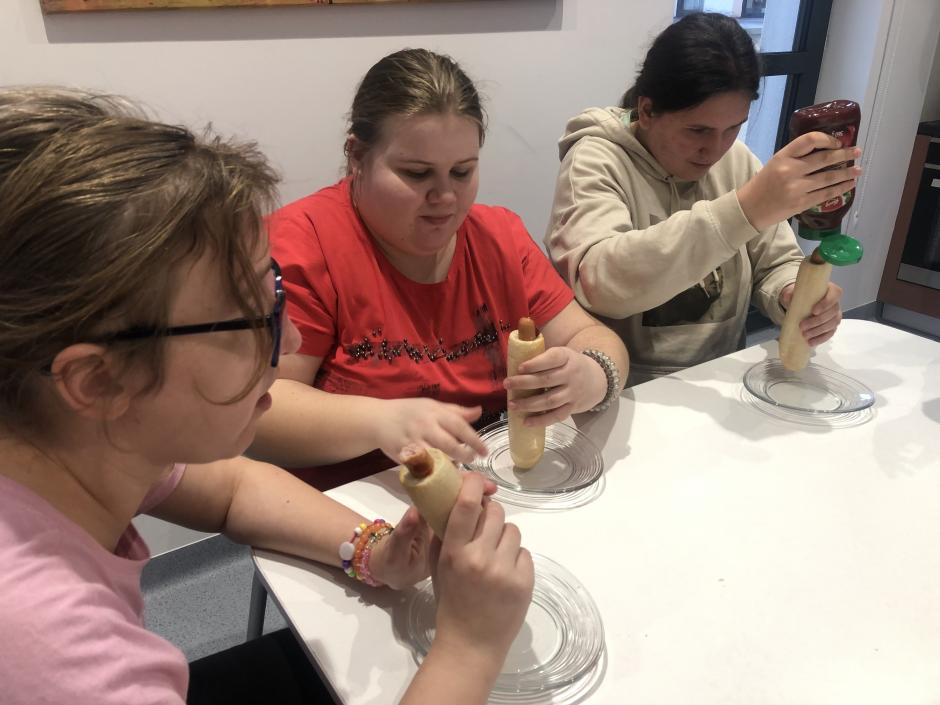 04. marca gr III i gr IV wzięły udział we wspólnych zajęciach kulinarnych, podczas których przygotowały hot – dogi. Wychowanki z wielkim zaangażowaniem tworzyły te pyszne przysmaki. Zajęcia były okazją do doskonalenia współpracy w grupie a także rozwijania samodzielności. Efektem końcowym jak zawsze było smakowite danie, które szybko zniknęło z talerzy.