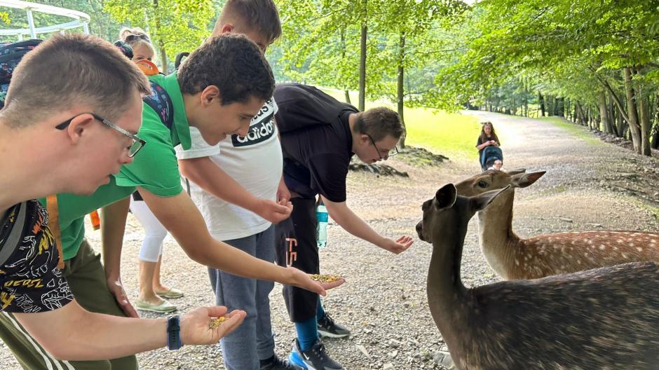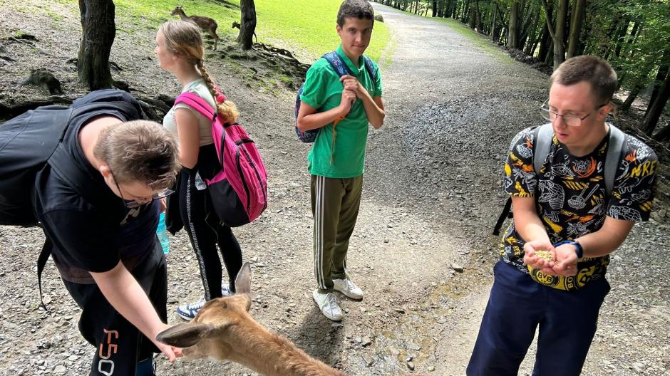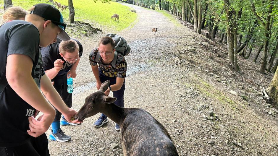 W dniu 5 czerwca wychowankowie Internatu pojechali na wycieczkę do wyjątkowego ogrodu zoologicznego w Ustroniu – Leśnego Parku Niespodzianek. Różnorodność zwierząt żyjących wolno na ogromnym terenie ogrodu zrobiła na uczestnikach ogromne wrażenie. Każdy mógł podziwiać i karmić jeleniowate m.in.: łosie, sarny, daniele a także terapeutycznie przytulić alpaki i kozy : ) Dumnie zaprezentowały się żubry, muflony, dziki, żbiki, jenoty i szop pracz. Największą atrakcją ogrodu był niewątpliwie pokaz lotów ptaków drapieżnych oraz sów. Pobyt w tym urokliwym miejscu zwieńczyliśmy wspólnym pieczeniem kiełbasek i odpoczynkiem „pod chmurką”. Wychowankom wycieczka bardzo się podobała : ))