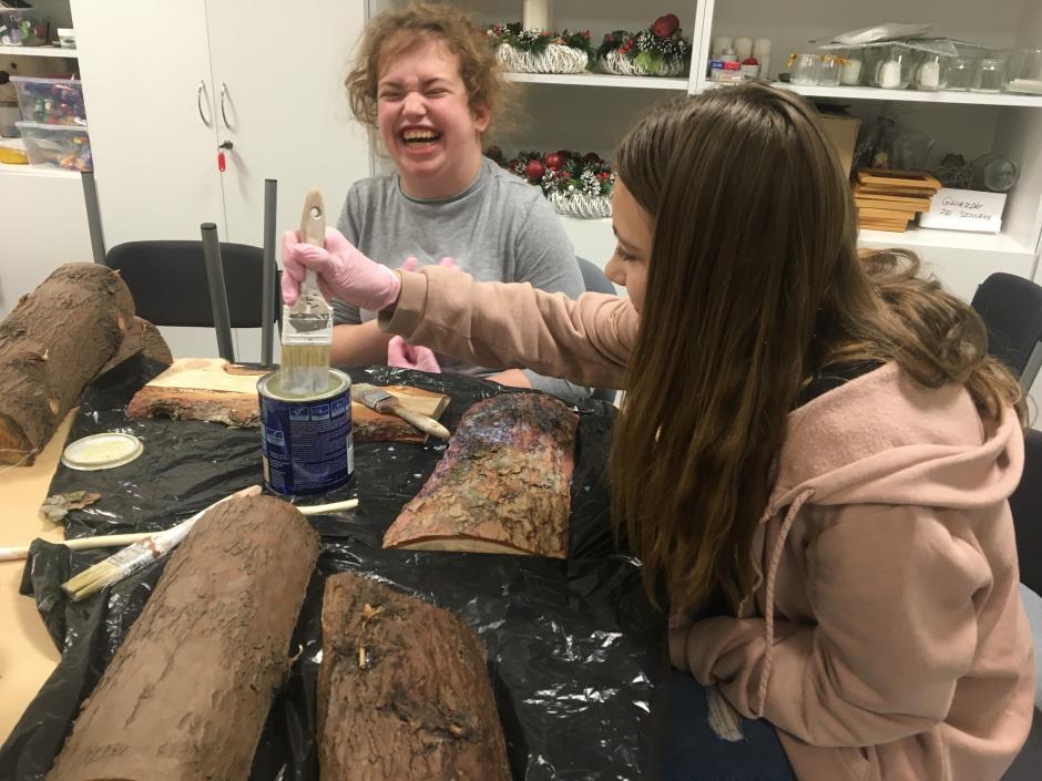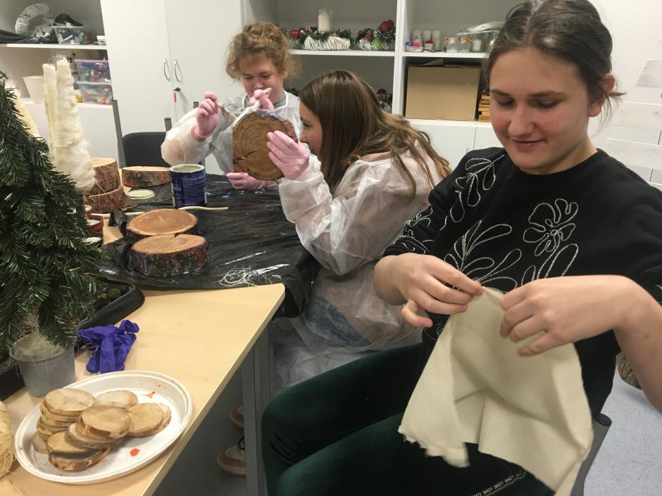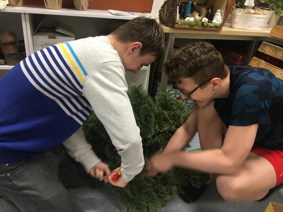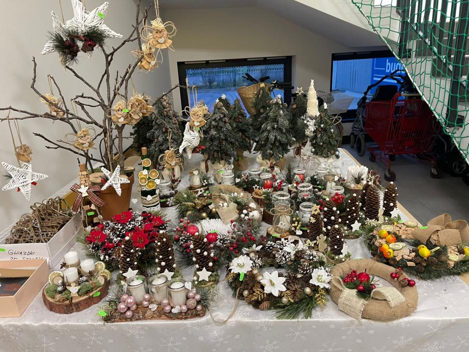 Wychowankowie w ramach zajęć plastyczno – konstrukcyjnych pod opieką wychowawców wykonali wiele ozdób świątecznych. Przygotowania do tegorocznego kiermaszu rozpoczęły się już w październiku. Pomysłów i chętnych rąk do pracy nie brakowało. Wśród świątecznych ozdób można podziwiać skrzaciki uszyte z tkaniny, wieńce
