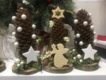 z szyszek, choineczki, stroiki na drewnie, kartki świąteczne, drewniane aniołki i prace