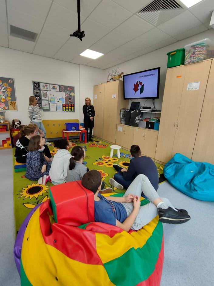 5 października 2022 r. w naszej szkole rozpoczęły się pierwsze zajęcia z cyklu „4 pory roku z AAC”. Jest to program opracowany przez panie Joannę Zając i Agnieszkę Olearczyk, mający na celu wdrażanie alternatywnych i wspomagających metod komunikacji wśród uczniów Szkoły Podstawowej. Inauguracyjne spotkanie odbyło się nie bez przyczyny w październiku. Miesiąc ten jest bowiem od lat uznawany jako Międzynarodowy Miesiąc Komunikacji Wspomagającej i Alternatywnej, a w tym roku obchodzony pod hasłem: „Pokaż swój głos”. Dlatego też podczas zajęć nasi uczniowie pokazali swój głos podczas różnych aktywności związanych z aktualną pora roku- jesienią. Uczyli się opowiadać o tej pełnej barw porze roku, wykorzystując symbole PCS i gesty Makaton. Było wspólne rozwiązywanie zagadek, aktywne czytanie książeczki o jeżu i śpiewanie piosenki o roztańczonej jesieni. Nie zabrakło również zabaw angażujących wszystkie zmysły. Październikowe spotkanie było bardzo udane, dlatego zapraszamy na kolejne!